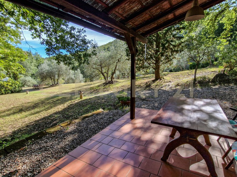 A circondare la casa, un ampio **portico di 28 mq**, perfetto per trascorrere momenti di relax all'aperto, godendo della vista sul paesaggio circostante, ascoltando il dolce suono dei ruscelli che scorrono ai margini della proprietà.