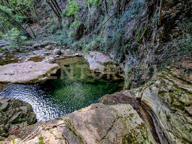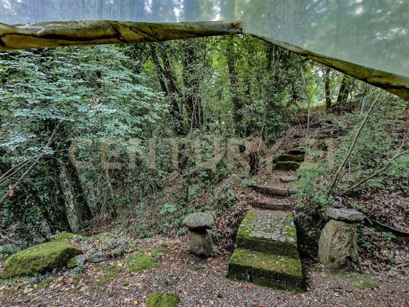 La proprietà è circondata da **5000 mq di bosco**, che offrono una privacy totale, senza però risultare isolata. La vegetazione rigogliosa e i suoni della natura creano un ambiente ideale per chi cerca silenzio e serenità. I **due ruscelli** che scorrono lungo i margini della tenuta aggiungono un tocco fiabesco, e uno di questi forma splendidi **laghetti naturali**, perfetti per chi desidera rilassarsi immerso nella natura incontaminata.