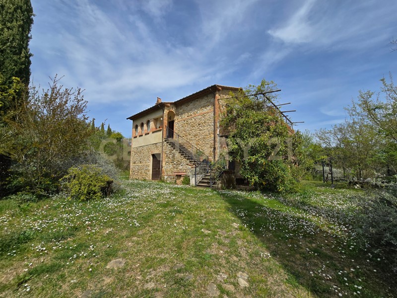 In cima a un poggio circondato dal verde, con vista mozzafiato sulle colline toscane, questo splendido casale in pietra è un raro esempio di restauro rispettoso e raffinato, dove ogni dettaglio racconta la bellezza della tradizione.