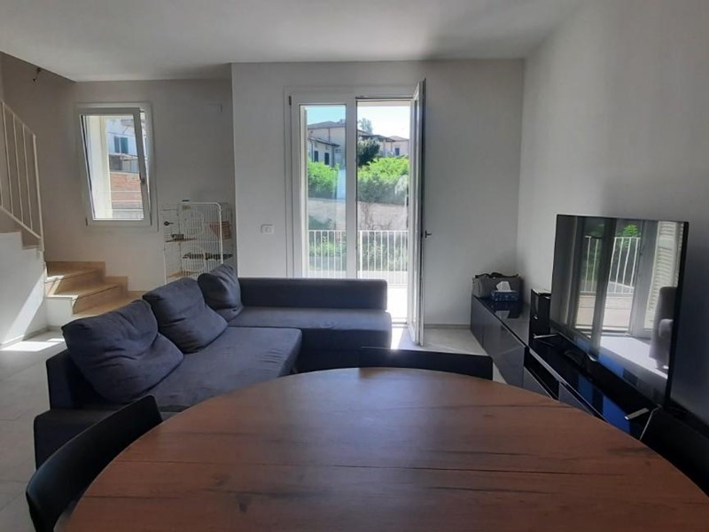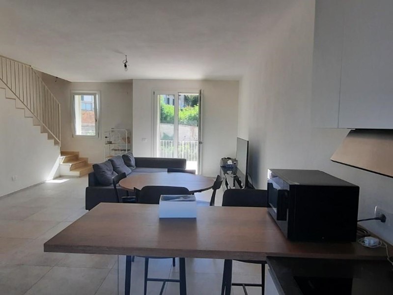 Appartamento al Piano Secondo di maggior fabbricato di recente costruzione, dotato di tutti i confort e venduto parzialmente arredato. Internamente si sviluppa su due piani dove troviamo una volta entrati area soggiorno con terrazzo, cucina con altro terrazzo e bagno. Dal soggiorno tramite scala a vista si raggiunge il Piano soprastante composto da disimpegno, bagno e due camere entrambe con annesso terrazzo. La proprietà esclusiva si completa di 2 posti auto di cui uno coperto. Internamente l'unità abitativa si presenta areata e luminosa grazie alle ampie aperture ed ai suoi terrazzi, oltre che ben conservata dalla attuale proprietà che lo rende libero su richiesta del nuovo acquirente.
