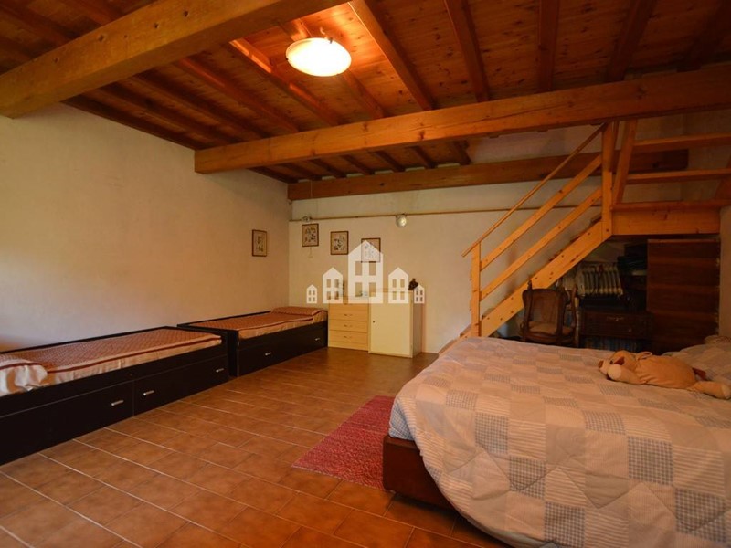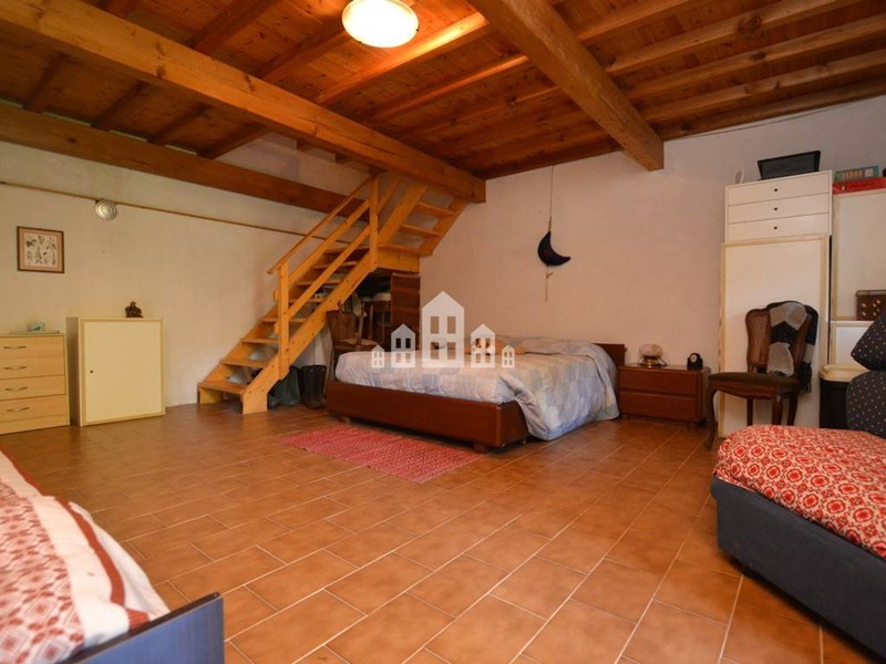 La proprietà si sviluppa su tre livelli: al piano terreno troviamo la zona giorno, caratterizzata da soffitti a volte in mattoni che raccontano il fascino delle case di un tempo, un camino e una stufa a pellet che la rendono calda e accogliente anche durante gli inverni più rigidi. Al primo piano prende spazio una camera matrimoniale luminosa con accesso al balcone, ideale per godere di un risveglio con vista sulla valle. A completare la casa, un soppalco sfruttabile come soffitta o deposito, utile per organizzare al meglio gli spazi.