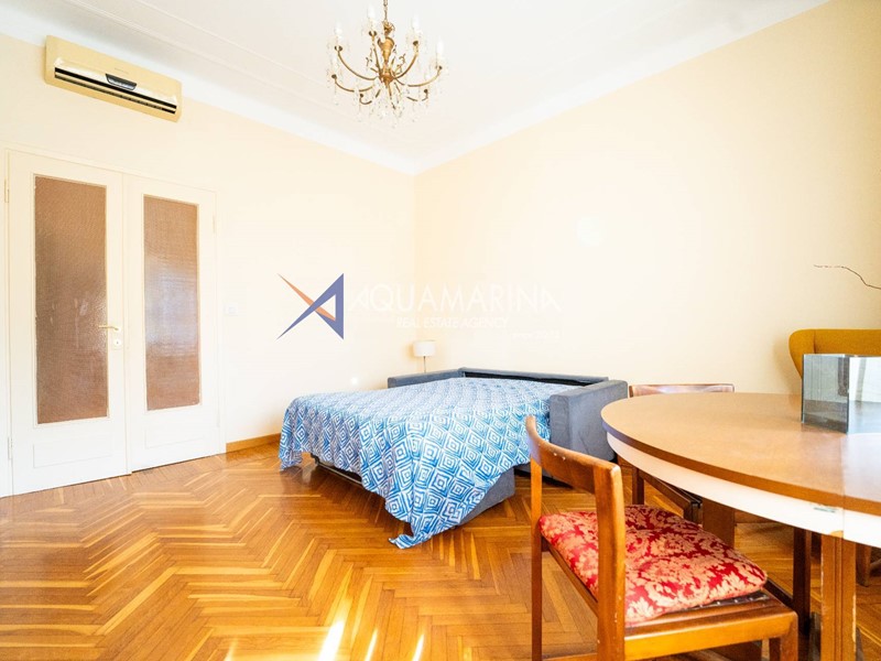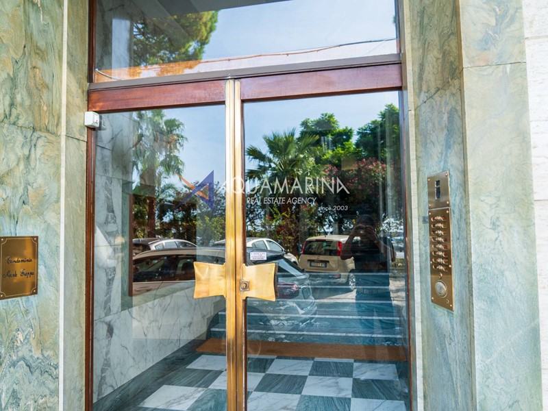 Sanremo Appartamento fronte mare e pista ciclabile. Vendiamo prestigioso appartamento ristrutturato in Corso Orazio Raimondo, fronte mare, sulla pista ciclabile e davanti a Porto Sole. Ci troviamo in una delle zone più prestigiose di Sanremo, in pieno centro e con tutte le comodità a portata di mano, eliminando così ogni mezzo di trasporto. L'appartamento è inserito in un palazzo Signorile, Elegante e Prestigioso, con videocitofono, portone con apertura elettrica, spazio condominiale con parcheggi delimitato da sbarra, inoltre sono appena stati eseguiti i lavori di rifacimento facciate. L'immobile è al piano rialzato ed è dotato di doppio ingresso, questo permette, volendo di ricavare 2 appartamenti. I materiali interni sono di pregio con pavimenti in marmo e parquet, i serramenti esterni sono in alluminio con doppio vetro. L'ingresso si apre su un ampio corridoio, un salone con doppia porta, un altro grande salone con Bow Windows, un bagno finestrato con vasca, una camera. Proseguendo troviamo un altro corridoio dove è inserito un doppio e grande ripostiglio, un'ampia camera da letto con accesso al balcone esterno, un bagno finestrato con doccia, una cucina abitabile con porta finestra che accede al balcone interno cortile, sul balcone troviamo un locale ad uso lavanderia il quale può essere trasformato in un terzo bagno. L'appartamento è esposto a sud e gode di molta luce naturale e della vista mare, il riscaldamento è autonomo a radiatori ed è presente il raffrescamento per l'estate. E' presente anche una cantina e a richiesta un posto auto venduto separatamente dall'alloggio.