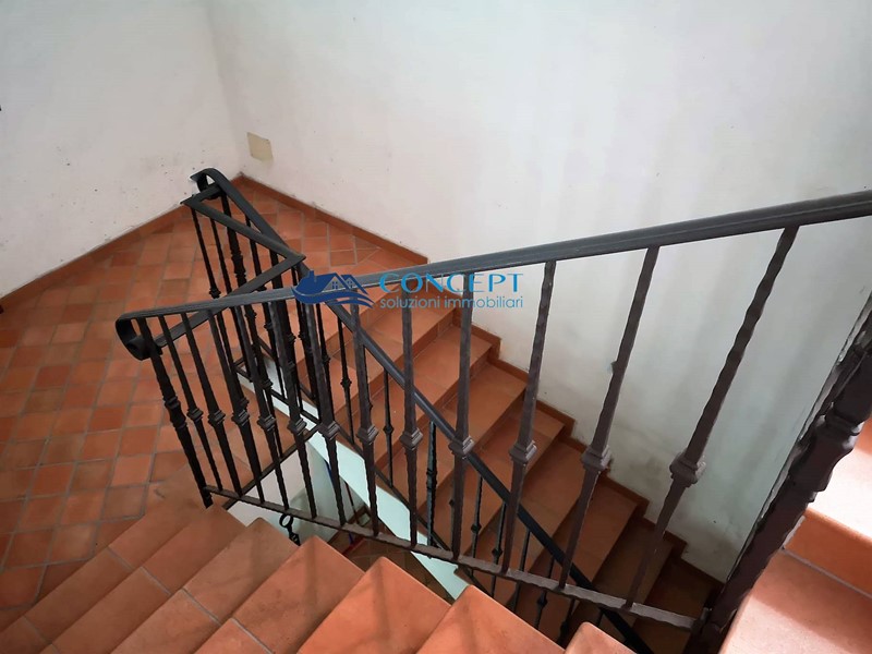 Scalinata interna in cotto d'este e ringhiera in ferro battuto.