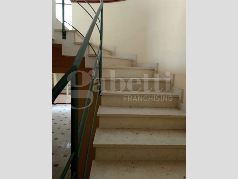 L'edificio, parte di una civile abitazione, presenta una struttura portante in cemento armato e muratura di tamponamento in blocchi intonacati e tinteggiati. Le pavimentazioni di marmo bianco al piano seminterrato e di parquet al piano terra conferiscono un'eleganza senza tempo, mentre gli infissi in alluminio anodizzato di colore verde garantiscono un'ottima luminosità e isolamento termico.