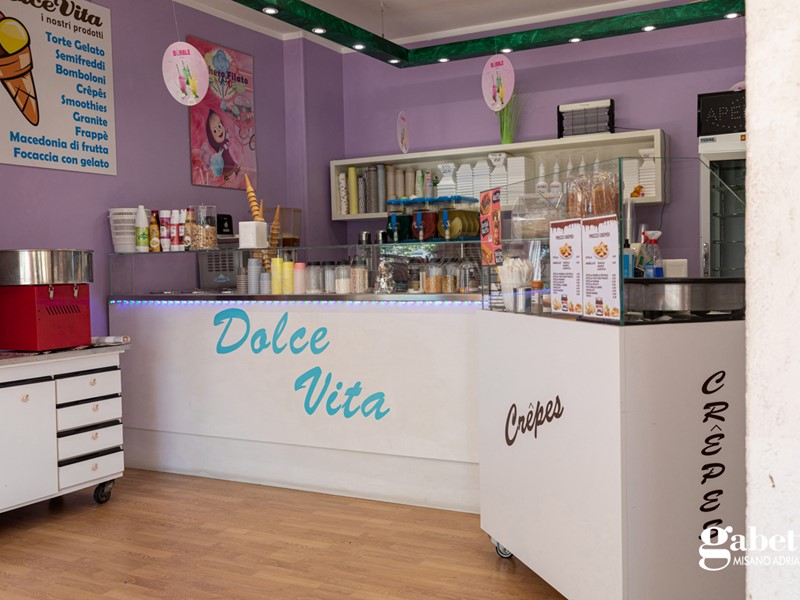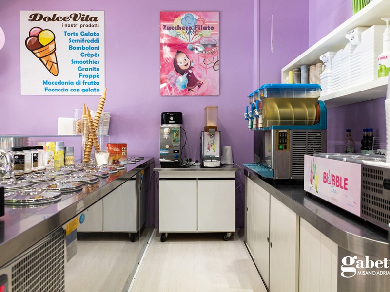 - Arredi e attrezzature incluse (con macchinari per gelato, granite, zucchero filato e crêpes)