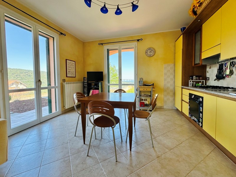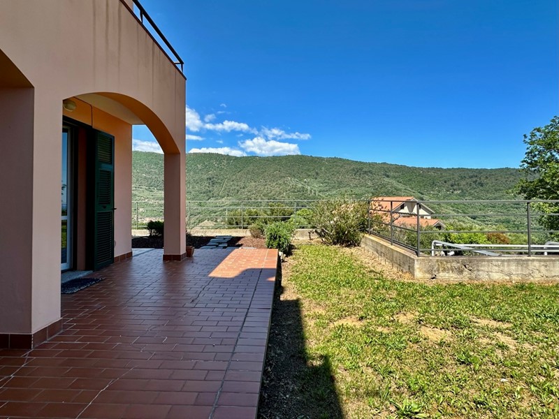 Siamo in Borgata Ascheri, nel comune di Diano Arentino.?Ulivi, pini e querce ci avvolgono come uno scialle le spalle, ma i nostri occhi guardano a sud e vedono mare e cielo. ?Il complesso immobiliare è della fine degli anni ’90, delicatamente posato nel verde della collina, ben conservato ed abitato. ?Si tratta di un caseggiato con appartamenti indipendenti, tutti con spazi esterni ed una vista panoramica. ?Il nostro è al piano terra. Attraverso un cancelletto esterno si arriva alla porta di casa. ?Dentro, saranno i colori caldi, sarà la luce del sole, ci si sente subito bene. ?La zona giorno ha una cucina completa e spaziosa, tavolo da pranzo dove possono stare sei, otto ospiti ed un grande divano ad angolo. ?Due porte finestra, una a sud, l’altra ad est regalano già dall’interno una vista straordinaria: il giardino, il profilo verdissimo della collina e poi: il mare.