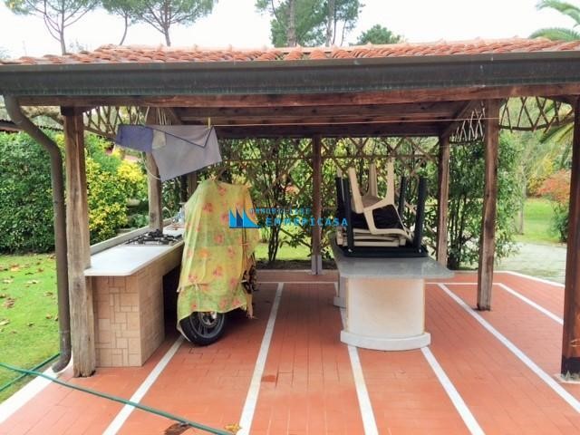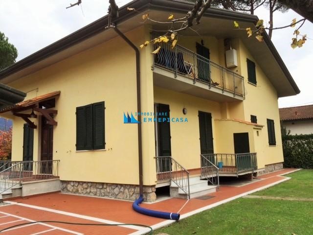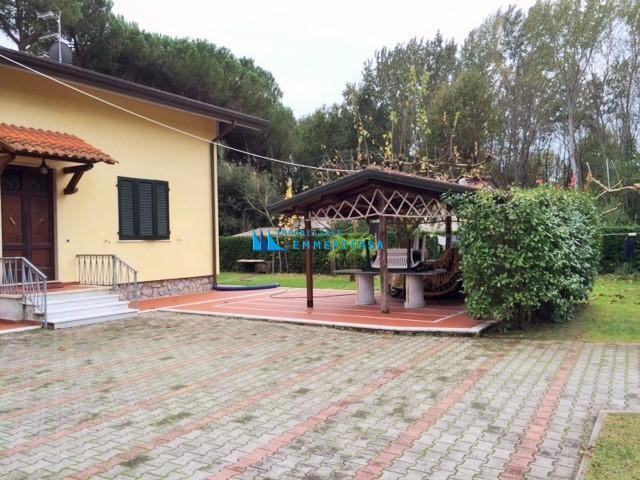 Poveromo. A soli 800 metri si vende in esclusiva villa singola sviluppata su due piani fuori terra con ampio giardino di pertinenza di circa 2000 mq. Sopraelevata di recente si compone di due appartamenti anche se unica unita' immobiliare. Grande appartamento di 140 mq al piano terra ristrutturato completamente (foto in allegato precedenti alla ristrutturazione) composto da ingresso, soggiorno con angolo cottura, due bagni e quattro camere matrimoniali; Appartamento mansardato al piano primo accessibile da bellissima scala in marmo composto da ingresso, angolo cottura/soggiorno, due camere matrimoniali e due bagni. Gazebo per pranzare all'aperto, posti auto interni e casetta di 30 mq in legno. Classe energetica F – IPE 174,99 kwh/mq anno. Rich. € 1.100.000 - Rif. H484