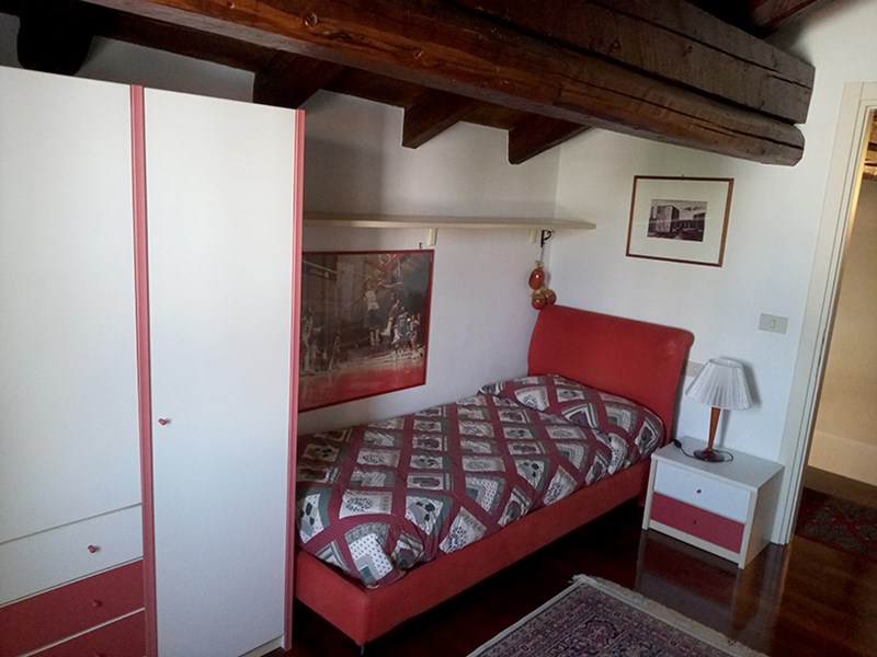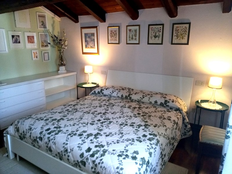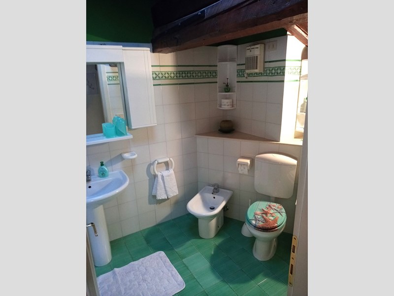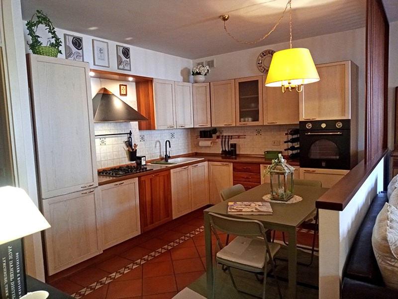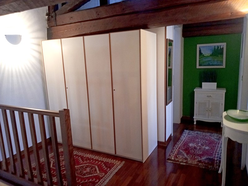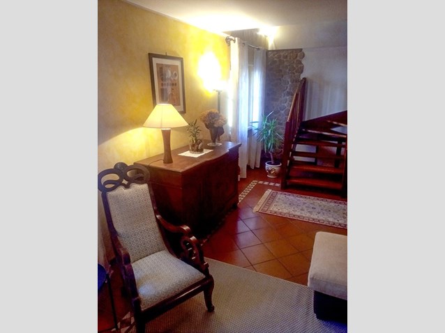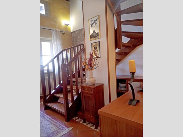 1 livello con ingresso, tinello /camera, bagno con vasca, living con cucina e zona relax tv dotata di caminetto nuovo . Una bellissima scala in legno di design porta al piano mansardato con antiche travi secolari a vista. Un disimpegno, una camera matrimoniale, una camera singola, un bagno con doccia, una zona tecnica con lavanderia e un ampio ripostiglio soffittati completano l'appartamento.