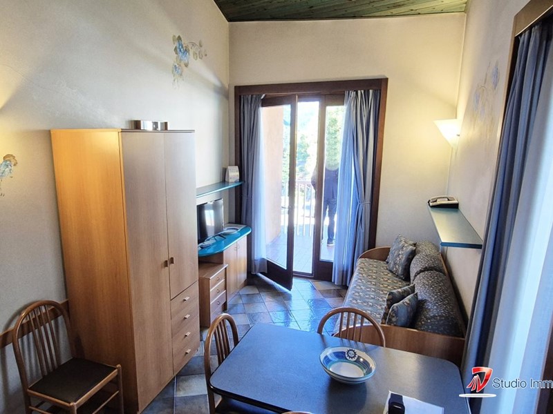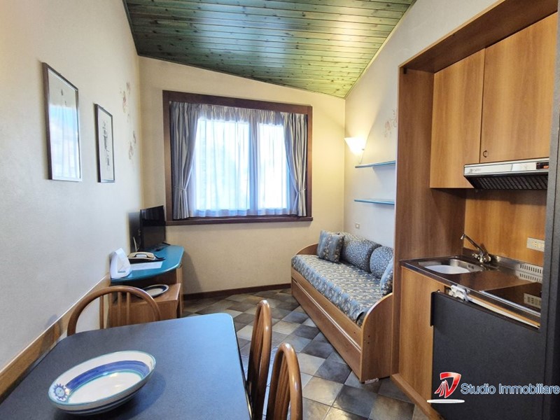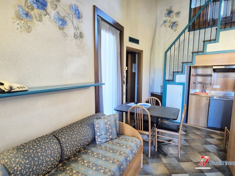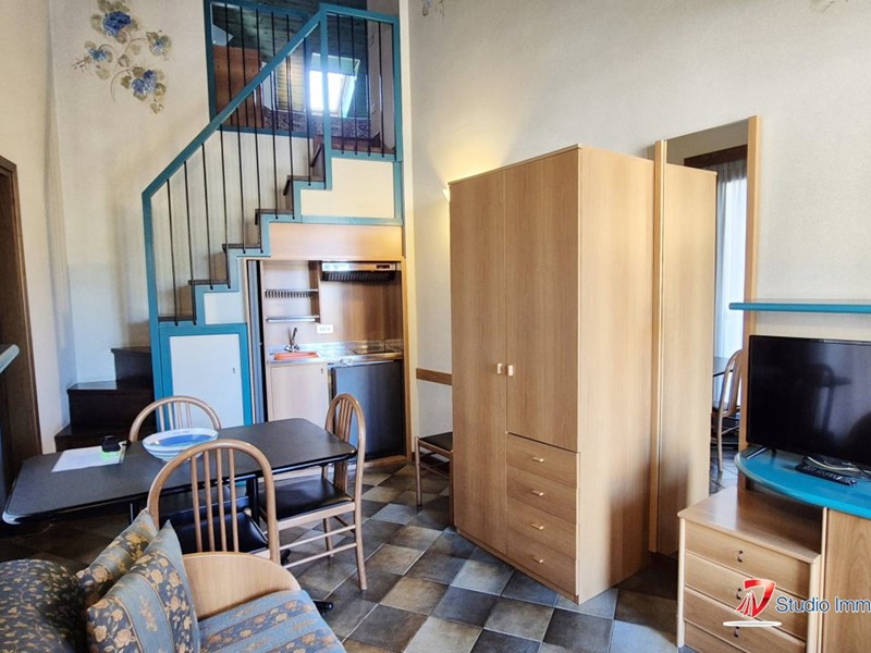 Proponiamo in vendita appartamento sito al terzo piano di un residence servito da ascensore, al momento suddiviso in due appartamenti distinti disposti su due livelli, composti ognuno da soggiorno con angolo cottura, bagno e al piano superiore da una camera. Inoltre un appartamento è dotato di ampio balcone ad angolo.\nPossibilità di mantenere le due unità immobiliari separate oppure di unirle sia tramite la zona giorno che la zona notte.\nPossibilità di acquisto box a parte all'interno del residence.\nOttima soluzione come casa vacanze o investimento grazie all'elevata richiesta di affitti turistici.\n\n