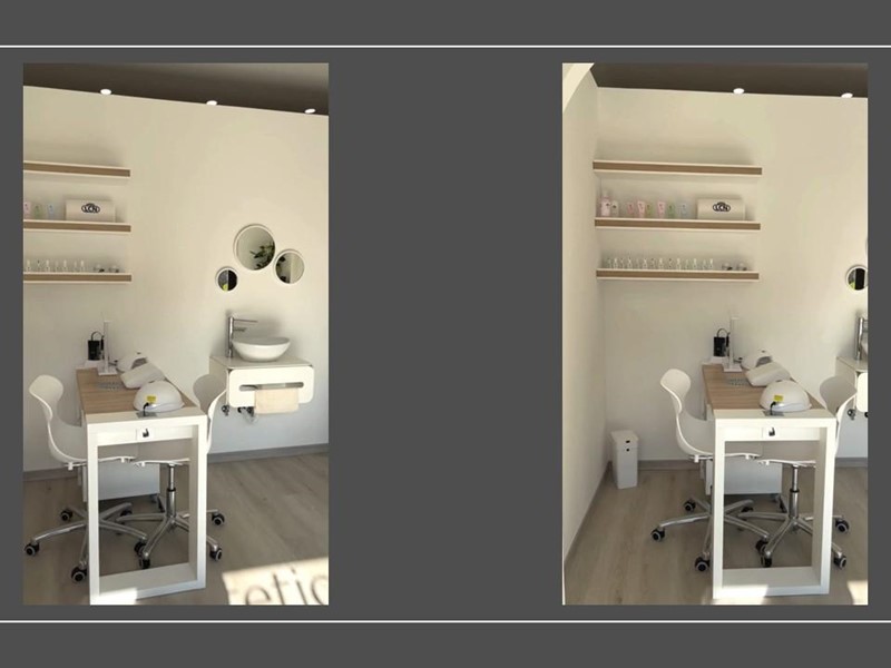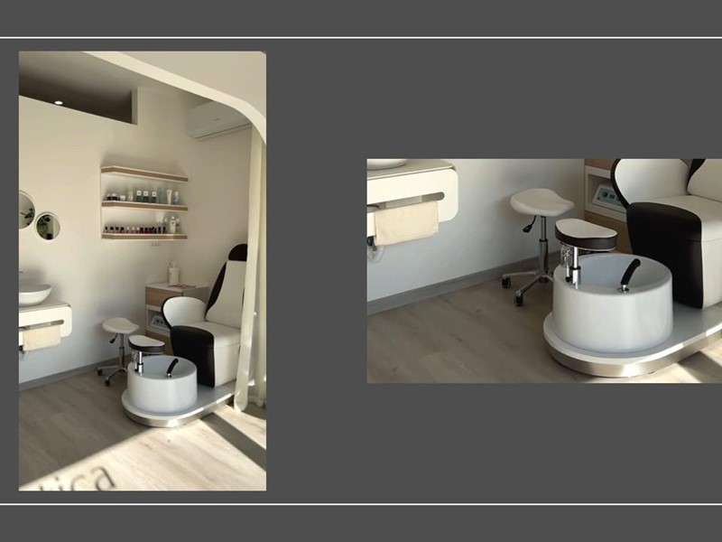 Disposto su due livelli eleganti e funzionali per un totale di circa mq 100, dispone di più cabine attrezzate ( viso/corpo con doccia, viso/corpo, epilazione laser e a cera, manicure/onicotecnica, pedicure classico e SPA con poltrona podologica) anche per dermopigmetazione/tatuaggi.
