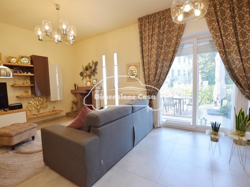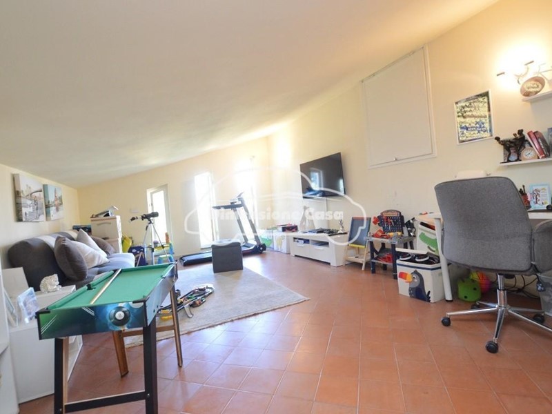 Si compone al piano terreno rialzato di ingresso, soggiorno con luminosa portafinestra che si apre sulla terrazza abitabile, ampia cucina con camino e balcone; cinque gradini ci accompagnano alla zona notte suddivisa in camera matrimoniale con balcone, camera doppia, cameretta e bagno finestrato con doccia; ampia mansarda uso relax od eventuale quarta camera. Completano la proprietà al piano terreno ampio ambiente uso taverna con bagno e lavanderia, due ampi vani uso cantina e portico per posto auto coperto.