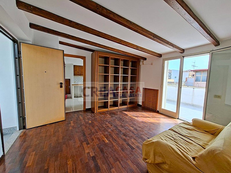 Ha una superficie commerciale di mq. 61,00 di cui mq. 55,00 risultano coperti mentre 24,00 mq. sono esterne tra Balcone e Terrazzo ; Gli ambienti sono distribuiti come segue: Ingresso/soggiorno, Cucina Abitabile,disimpegno, Bagno e Camera da letto.