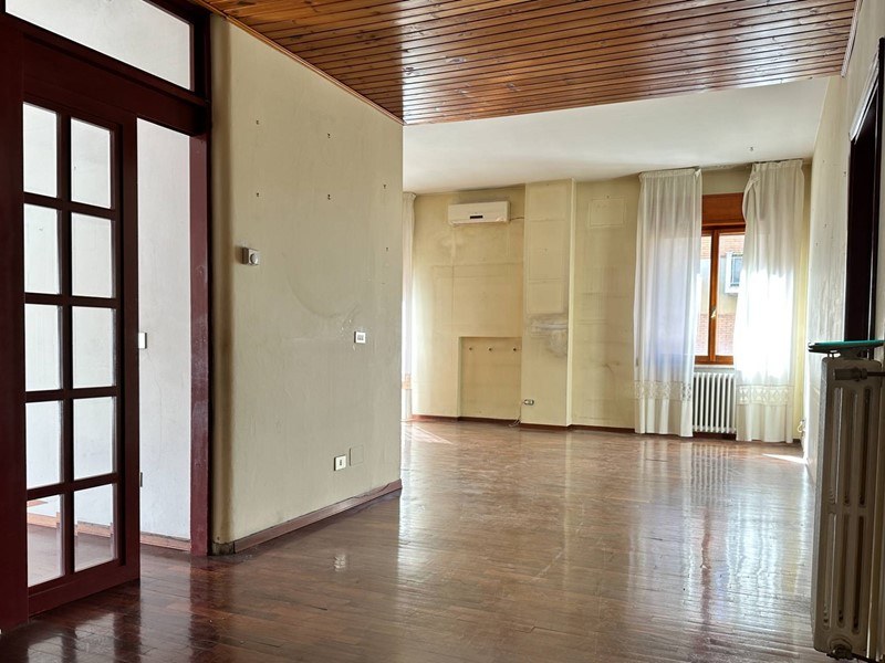 L'appartamento, già libero, necessita di una ristrutturazione soprattutto per quanto riguarda gli infissi, l'impianto elettrico e i bagni, mentre alcune sue rifiniture sono parzialmente da rivedere o manutenere (parquet da levigare).