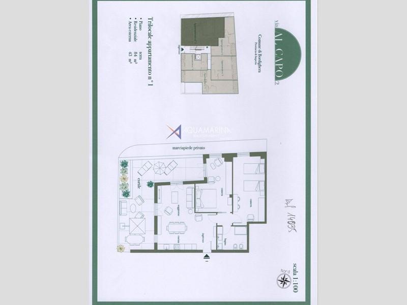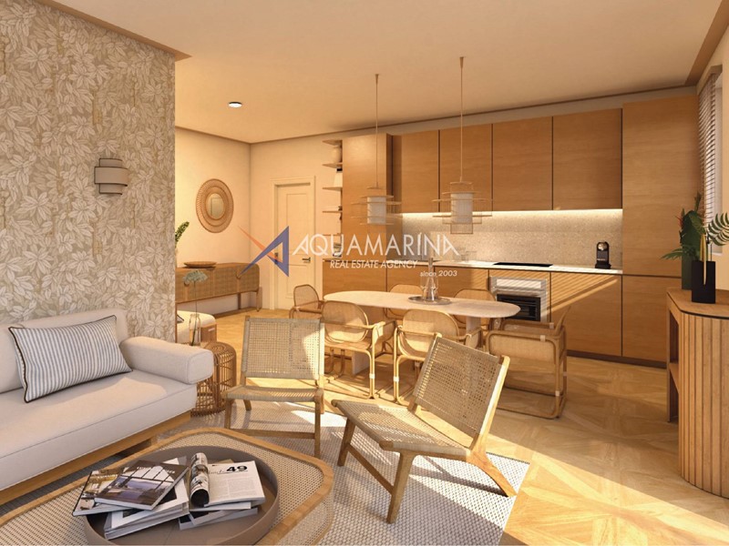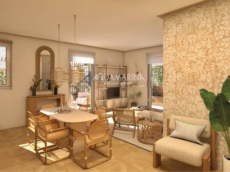 L'appartamento è composto un'ampia zona giorno con cucina a vista, disimpegno, due camere da letto, bagno ed una spaziosa superficie esterna per rilassarsi all'aria aperta.