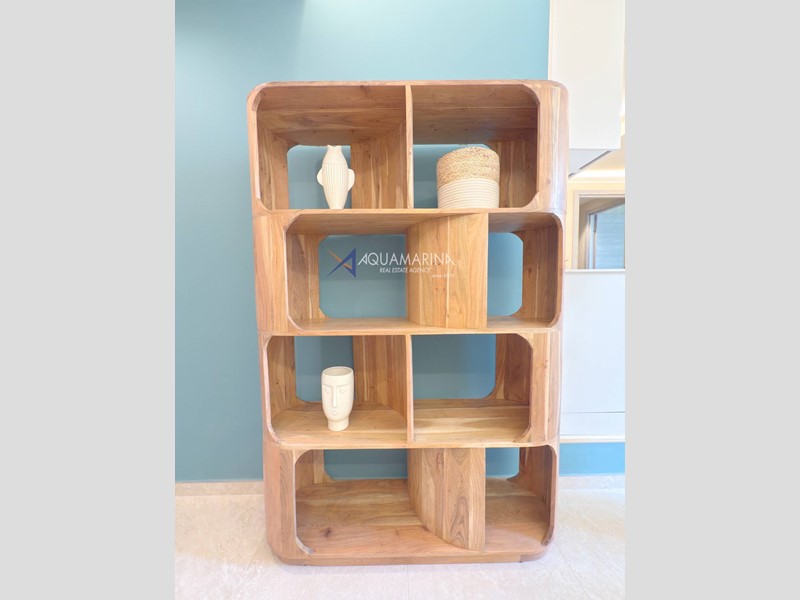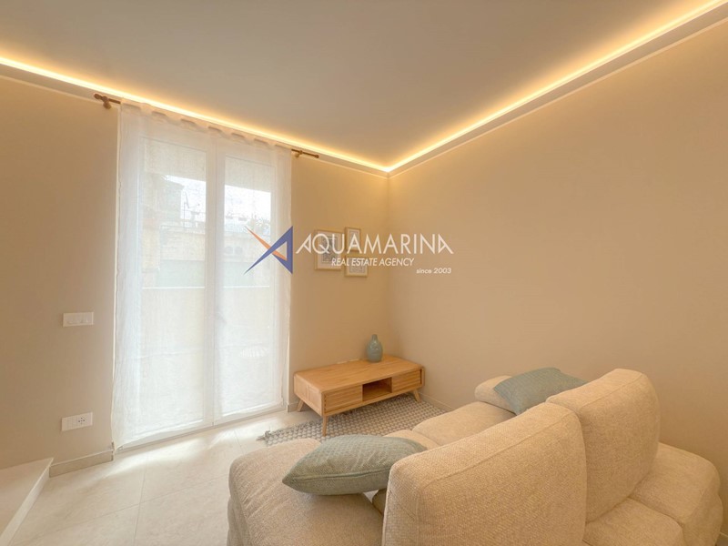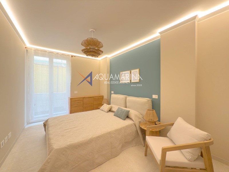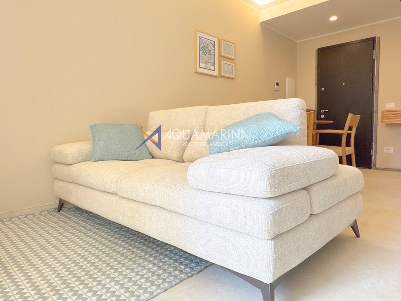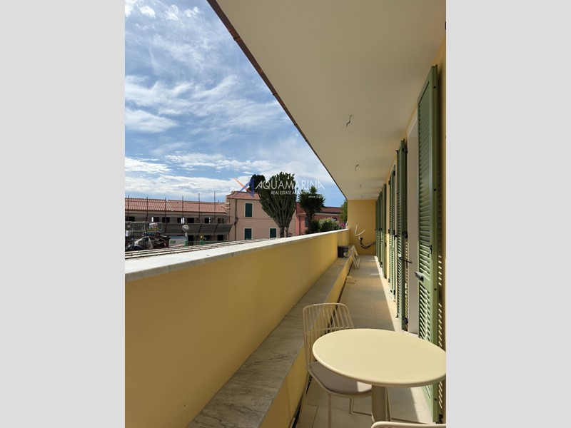 L'appartamento è composto da zona giorno con cucina a vista, disimpegno, una camere da letto, bagno e balcone per rilassarsi all'aria aperta, parziale vista mare.
