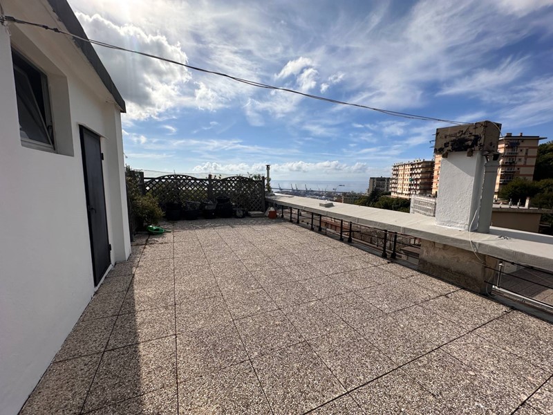 Goa Immobiliare vende grazioso appartamento ultimo piano vista mare di mq 75 composto da, ingresso, soggiorno con cucina, camera matrimoniale, camera singola, bagno e balcone vivibile vista mare. L'immobile è da riordinare ma con grandi potenzialità, è un sesto piano con ascensore ed il riscaldamento è centralizzato. Completa l'immobile porzione di terrazzo di proprietà. Per ulteriori info contattare il 3405901257 oppure lo 010591323. Potrete Trovarci in Via dei santi Giacomo e Filippo 24 R.
