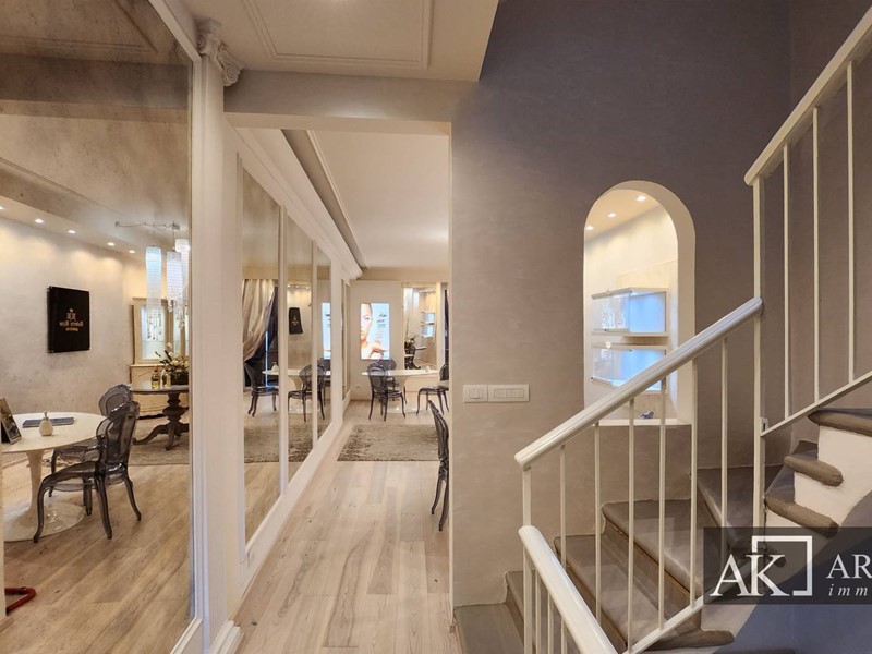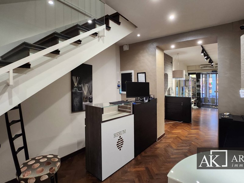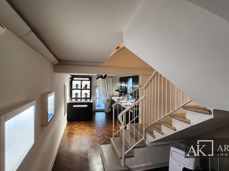 Il negozio si sviluppa su quattro livelli raggiungibili attraverso scale interne. Lo spazio al piano terra è caratterizzato da un accesso con vetrine laterali e da varie nicchie espositive. Il primo ed il secondo piano possono essere utilizzabili come ulteriori aree commerciali espositive mentre al quarto piano abbiamo locali di servizio ed un bagno.