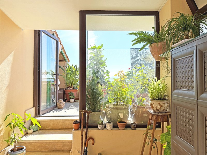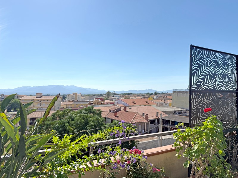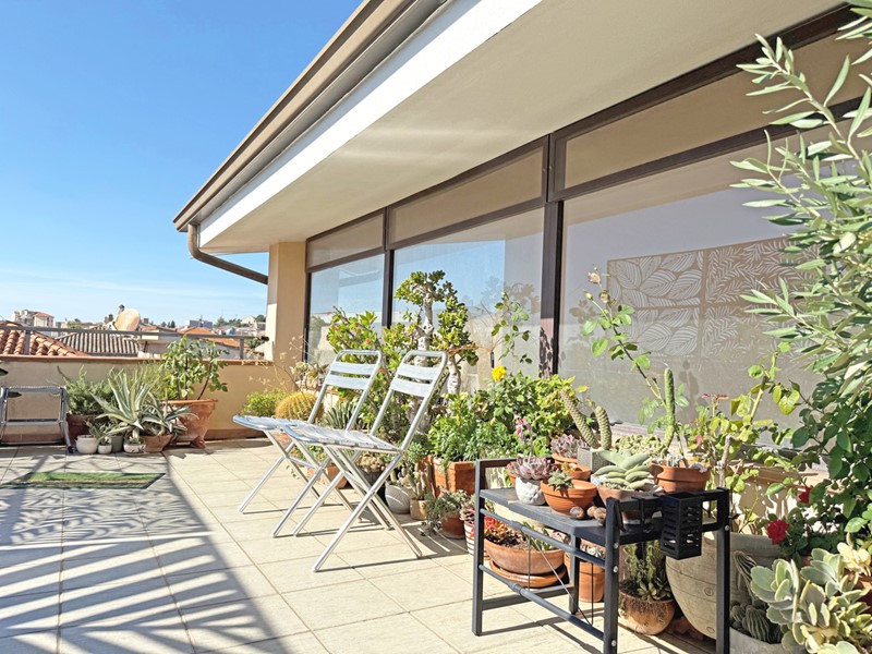 All'esterno è presente una terrazza panoramica di 27 mq e un balcone.