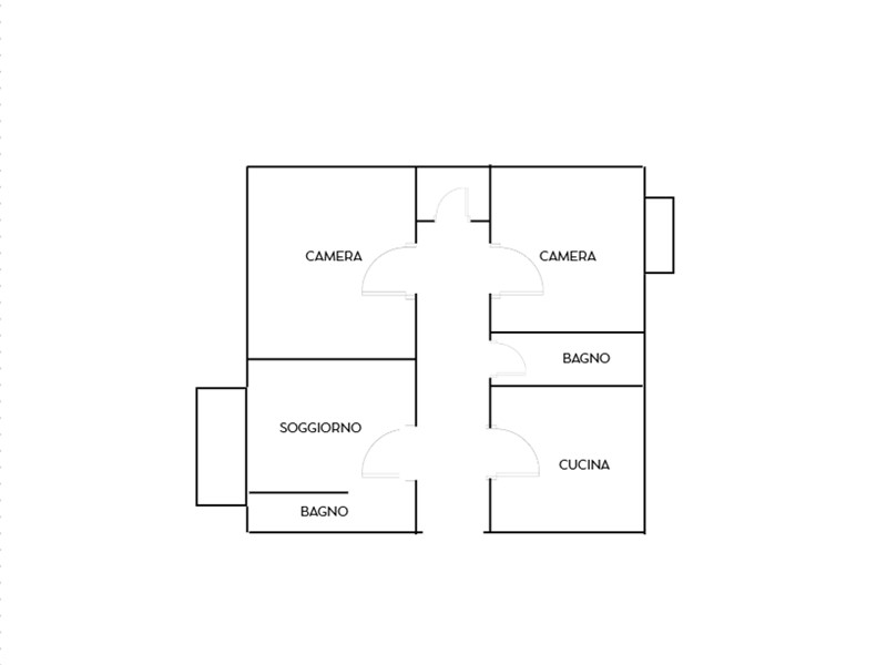 L'appartamento è composto da un ingresso che conduce ad un ampio soggiorno, dotato di accesso diretto al primo balcone, ideale per momenti di relax. La cucina, spaziosa e abitabile, rappresenta il cuore della casa, perfetta per conviviali pranzi e cene. Completano il piano principale un bagno finestrato e un disimpegno che conduce alla zona notte.