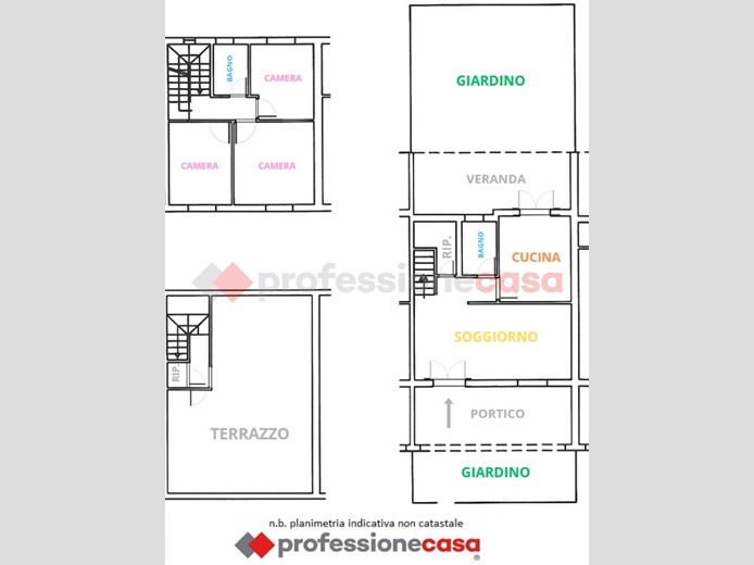 al piano superiore dove troviamo tre comode camere da letto e un bagno.