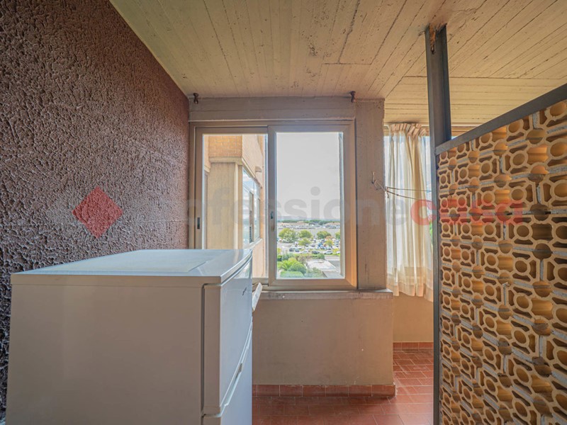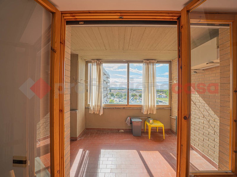 La proprietà, sita al quarto piano di più ampio complesso condominiale anni '80, munito di ascensore, si compone di zona giorno dotata di ingresso, ampia sala, cucinotto e veranda abitabile con attacchi dell'acqua e dunque ideale per ricreare un angolo lavanderia; la zona notte è invece composta da servizio finestrato con doccia e due camere da letto di cui una matrimoniale e una media.