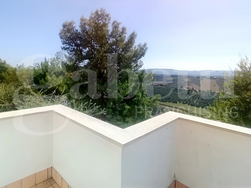 L'abitazione si sviluppa su tre livelli ed è composta da una taverna polivalente al piano terra, angolo cottura, tinello, sala, bagno, ripostiglio e balcone perimetrale al primo piano, tre camere e bagno all'ultimo piano con un bellissimo terrazzo panoramico esposto a sud.