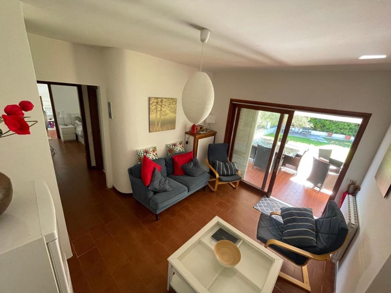 In zona collinare, all'interno di complesso signorile con piscina e parco condominiali, appartamento con ingresso indipendente, sviluppato su due livelli per un totale di circa 95 mq, composto da: ingresso in zona giorno con angolo cottura, bagno, piacevole veranda e giardino, due camere, doppi servizi, ripostiglio e ampia terrazza al piano terreno; al piano superiore mansarda. L'immobile presenta ottime finiture e ha una vista aperta sulla vallata. Completa la proprietà il posto auto nell'area condominiale. CLASSE ENERGETICA: in fase di valutazione.