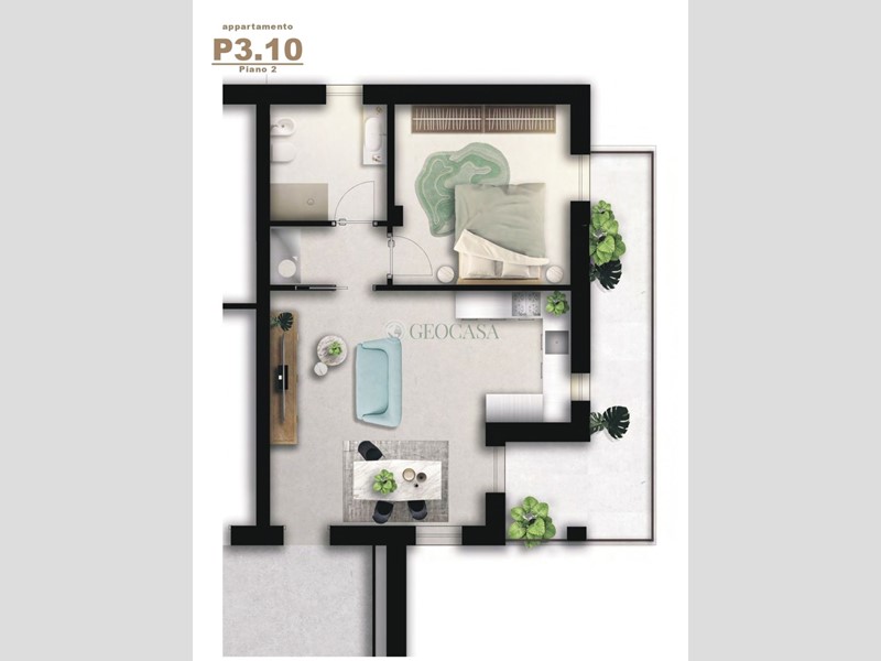 BRAGARINA-LA PIANTA. In complesso di nuova costruzione proponiamo appartamento al piano SECONDO così composto: ingresso in ampio soggiorno openspace con angolo cottura , disimpegno camera matrimoniale, bagno finestrato Dal soggiorno e dalla camera si accede ad un ampio terrazzo con loggia . L'immobile progettato secondo i criteri di efficienza energetica è dotato di infissi con doppio vetro, tapparelle elettriche in alluminio coibentato così come sono coibentati i cassonetti filo muro, murature perimetrali con mattone supertermico, impianto di riscaldamento a pavimento centralizzato, impianto fotovoltaico per le forniture condominiali, rifiniture e accessori come rubinetterie o placche di marca italiana, portone blindato. Possibilità di acquisto a parte di posti auto,box e cantine.