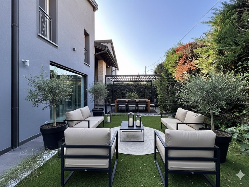 N.B. LE IMMAGINI CHE MOSTRANO IL GIARDINO CON ARREDO SONO A PURO SCOPO ESEMPLIFICATIVO E GENERATE CON A.I.