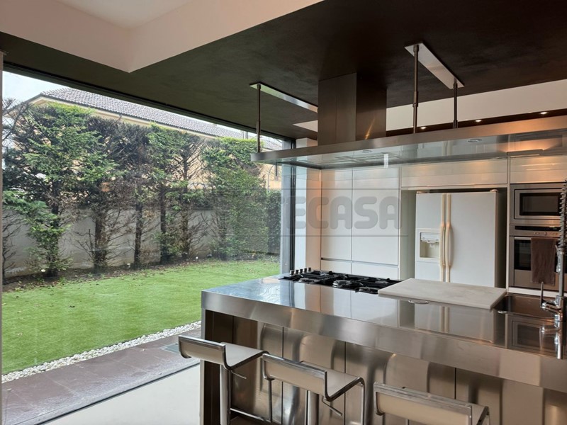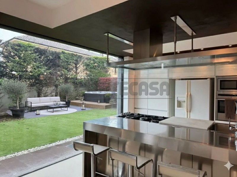 La proprietà è dotata inoltre di allarme periferico a zone con controllo da remoto, sistema di video sorveglianza, videocitofono, addolcitore, impianto di irrigazione automatica del giardino, basculante box con apertura automatica e colonnina per la ricarica di auto elettrica.