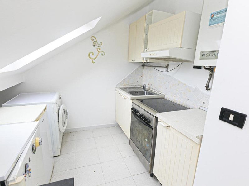 L’appartamento si trova al terzo e ultimo piano di una palazzina composta da sole tre unità abitative, senza spese di amministrazione. Si tratta di una caratteristica mansarda, resa unica dal tetto particolarmente “appuntito”, che riduce al minimo lo spazio perso nelle zone più basse.