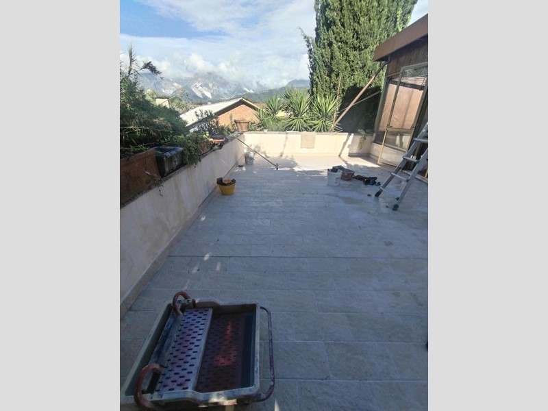 Rif. C 41 Avenza, zona centrale, in contesto bifamiliare e libero su 4 lati, appartamento posto al primo piano ed ultimo di 138 mq. su unico livello . Ottima esposizione a 360 gradi . Composto da cucina abitabile, sala, da dove si accede alla splendida terrazza di 130 mq. con bellissima vista sulle Alpi Apuane , 4 ampie camere , di cui 2 con balcone, ampio bagno di recente realizzazione, come l'impianto elettrico nuovo e certificato . Posto auto di proprietà in corte comune. Impianto elettrico certificato
