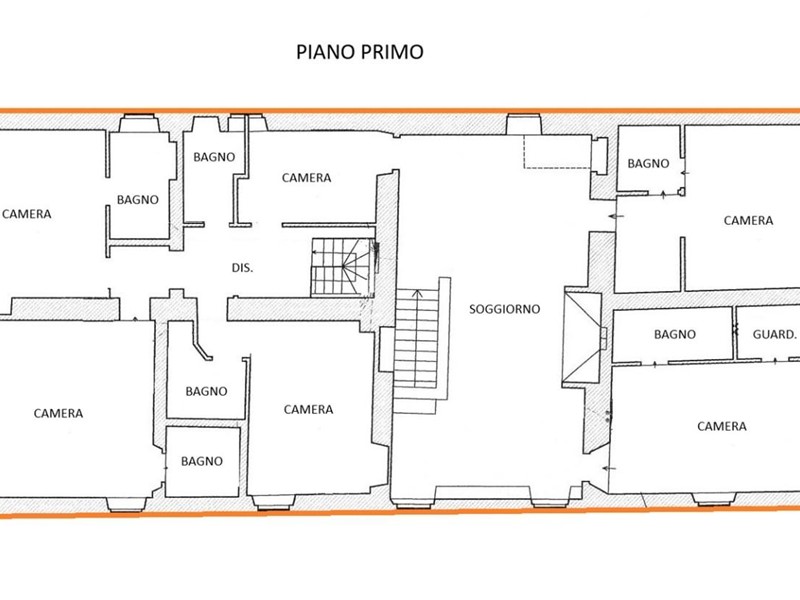L’immobile si sviluppa su due livelli, caratterizzati da ampi spazi, atmosfere accoglienti e dettagli architettonici originali come i camini in pietra e il vecchio forno, che conferiscono alla casa un sapore autentico. Al piano terra si accede attraverso un grande soggiorno con camino, cuore pulsante della casa e luogo ideale per convivialità e relax. Un disimpegno conduce a un antico forno ancora presente, testimone della storia del casale. A seguire troviamo la cucina, la sala da pranzo, un bagno di servizio, un ulteriore disimpegno e uno studio con bagno privato, perfetto come spazio di lavoro o come camera per ospiti. Il piano primo ospita invece un ampio soggiorno con camino, che funge da elegante salotto con affaccio sulla campagna, e ben sei camere da letto, ciascuna dotata del proprio bagno privato. Una disposizione che assicura comfort e privacy, rendendo la proprietà perfetta per ospitare amici, familiari o per attività ricettiva di livello. L proprietà è dotata di pannelli solari per la produzione di acqua calda e di pannelli fotovoltaici che producono 6 kw di energia. Completano la proprietà una piccola cantina interrata, ideale per vini e prodotti tipici, e un locale tecnico. All’esterno, la vera protagonista è la piscina, collocata in posizione panoramica, da cui godere una vista mozzafiato sulla vallata e momenti di assoluto relax immersi nella natura. A servizio della piscina una comoda dependance ad uso deposito. Coniugando l’autenticità delle dimore toscane con spazi funzionali e ben organizzati, questo casale rappresenta un’opportunità unica: una residenza di charme per chi desidera vivere la Toscana più vera o un investimento di grande appeal nel settore turistico-ricettivo. L’Immobiliare Cinelli ci tiene a precisare che le caratteristiche tecniche, disposizione interna e accessori indicati, poterebbero in alcuni casi essere diversi dall’effettivo stato di fatto dell’immobile, l’Agenzia Immobiliare declina ogni responsabilità per eventuali involontarie incoerenze. Per garantire la privacy, La posizione dell'immobile è solo indicativa della zona e l'indirizzo inserito nell'annuncio non è quello reale, per maggiori dettagli, vi invitiamo a contattare il ns. ufficio ai seguenti numeri: 0571664828 – 3355410553 - 3387294822. Oppure inviandoci una mail all’indirizzo: info@immobiliarecinelli.it