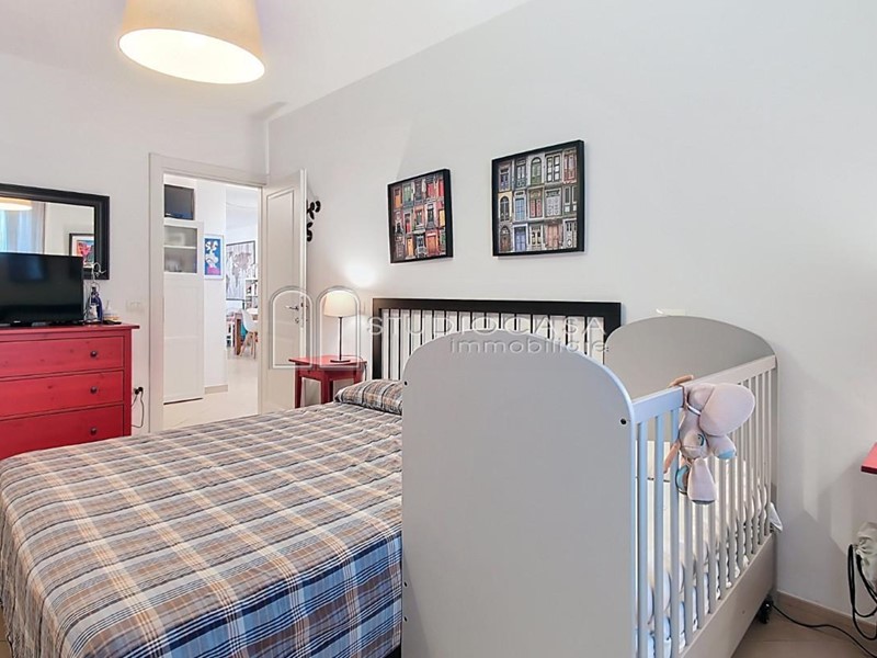 All’interno ci accoglie un ampio open space di oltre 30 mq, luminoso e ben suddiviso tra zona living e zona pranzo-cucina, con esposizione a sud che garantisce ambienti caldi e accoglienti. La zona notte comprende un disimpegno con ripostiglio attrezzato a lavanderia, un bagno con doccia, una camera matrimoniale di circa 15 mq e una camera singola di circa 11 mq.