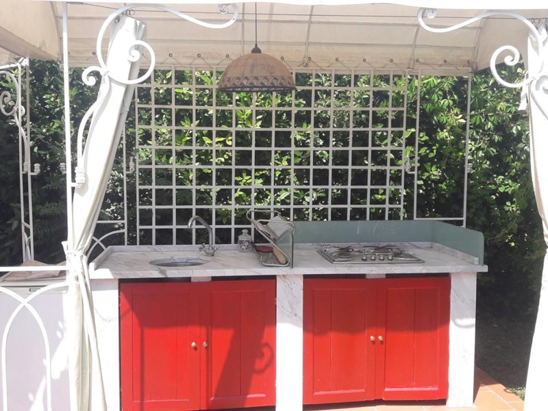 Località Ronchi di Massa – A soli 800 metri dal mare e dalle rinomate spiagge versiliesi, immersa in un raffinato contesto residenziale riservato ma vicinissimo a tutti i servizi, si propone in vendita una splendida porzione (terra cielo) di villa signorile, luminosissima, soleggiata, finemente arredata e curata in ogni dettaglio.
