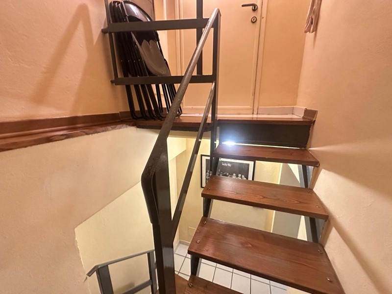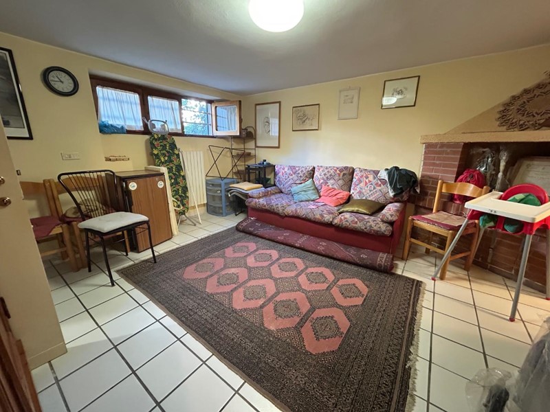 Attraverso una scala interna in legno si accede al piano seminterrato, composto da una spaziosa taverna con caminetto, secondo servizio igienico e accesso diretto al garage.