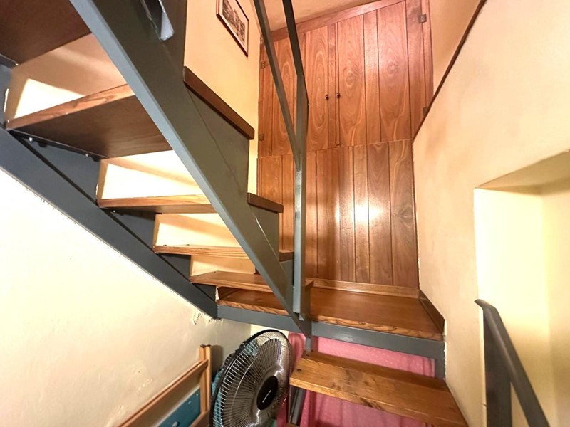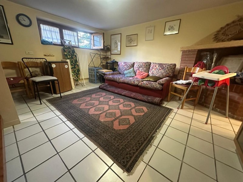 Attraverso una scala interna in legno si accede al piano seminterrato, composto da una spaziosa taverna con caminetto, secondo servizio igienico e accesso diretto al garage.