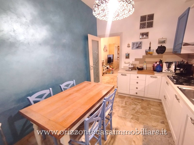 Ristrutturato nel 2016 anche nella impiantistica elettrica e termo idraulica, è attualmente così composto: ingresso su disimpegno e con armadiature a muro su misura, grande soggiorno, cucina abitabile e separata, ripostiglio, due camere, un bagno e due balconi. La proprietà è completata da un fondaco/cantina situato al piano seminterrato.