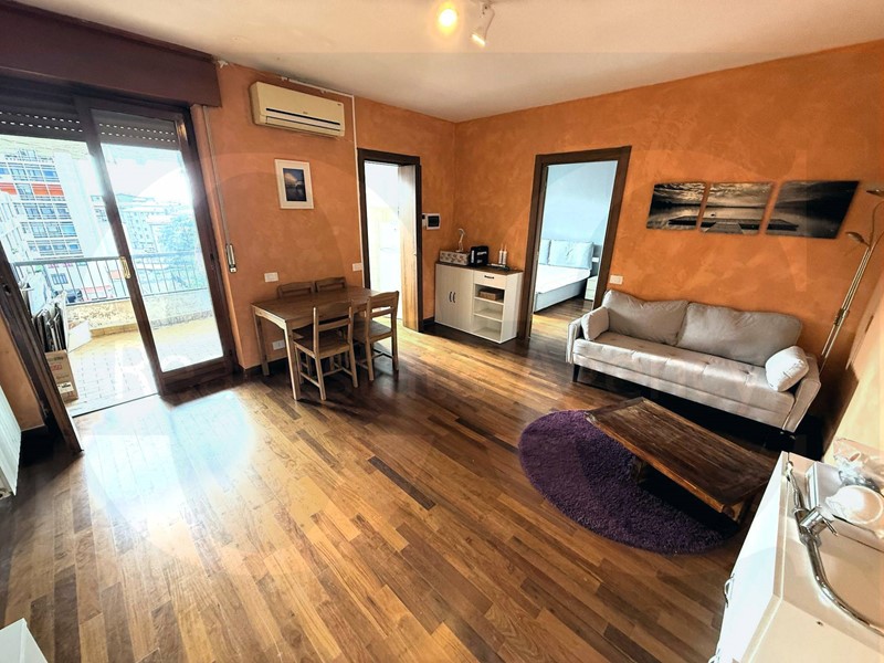 In zona servita da tutti i beni di prima necessità proponiamo, in palazzina signorile, panoramico appartamento di 50 mq composto da: Ingresso nel soggiorno dotato di un terrazzino di c.ca 4,5 mq, cucinotto, camera matrimoniale, antibagno e bagno cieco con doccia. L'appartamento è completamente arredato, anche di elettrodomestici, come dalle foto allegate (ad eccezione del piano cottura ad induzione e del forno che sono in fase di installazione). Non sono ammessi animali domestici.
