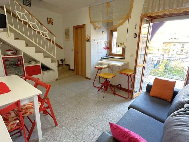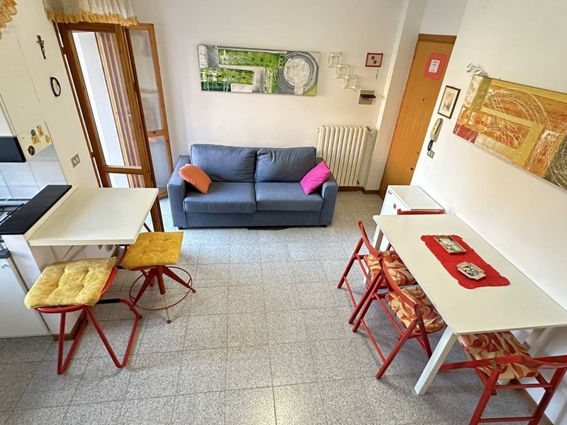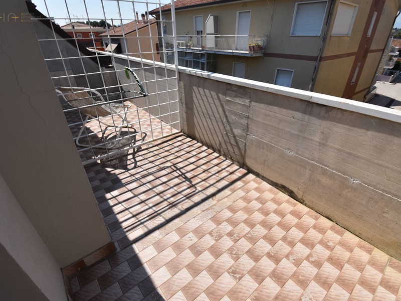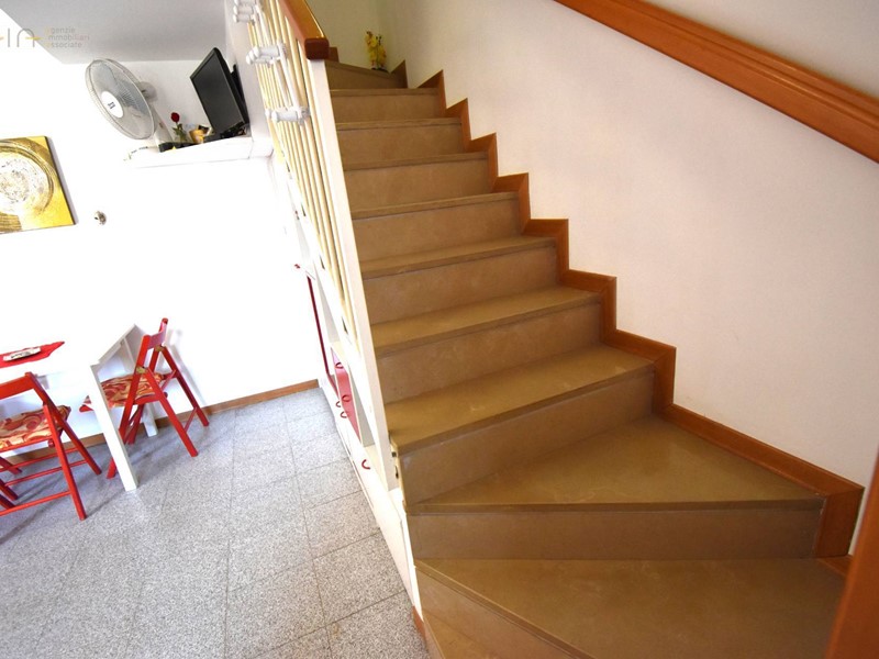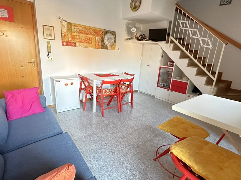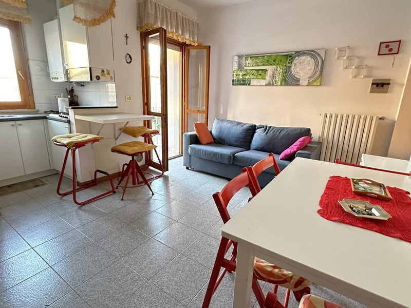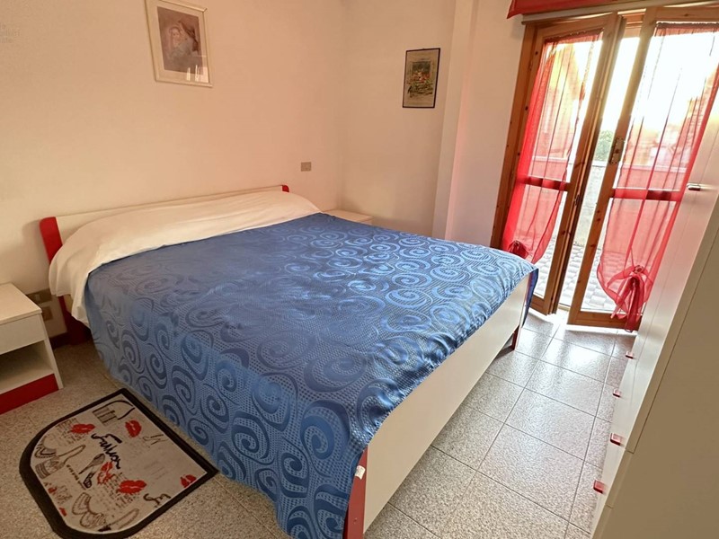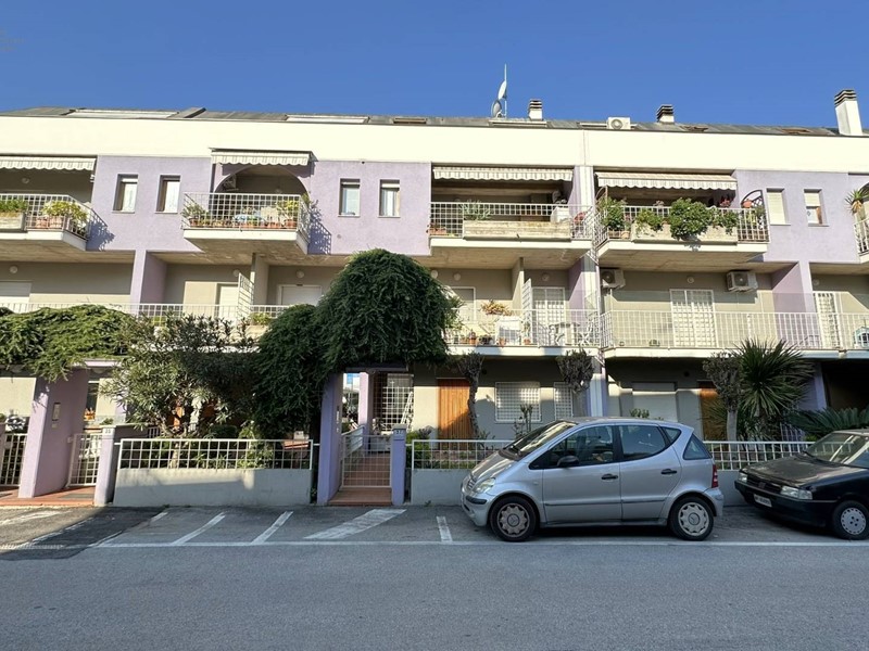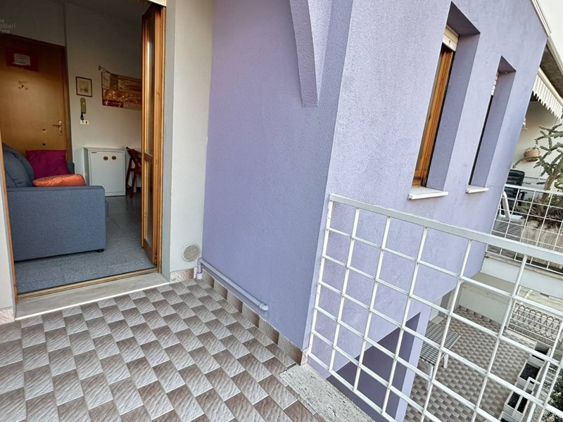 Appartamento in buono stato a pochi passi dal lungomare Rinascimento dislocato su due livelli, secondo e terzo piano, per complessivi mq. 52 circa interni e mq 10 di balconi, così composto: al 2° piano troviamo un ampio soggiorno con angolo cottura, bagno di servizio, balcone abitabile e scala di accesso al piano superiore con la zona notte composta da 2 camere da letto (una matrimoniale e uno studio), un bagno e ampio balcone abitabile. L'alloggio luminoso ed arioso si trova in buono stato di conservazione con pavimentazione in monocottura, infissi in legno con vetri termici e riscaldamento autonomo. La proprietà, all'interno di un piccolo condominio, ristrutturato esternamente e ritinteggiato, è in zona residenziale e tranquilla vicina a negozi e servizi vari ed è un ottima soluzione sia per le vacanze, dato che dista solo 250 mt dalla spiaggia, che per un uso abitativo. Disponibile, in vendita, nelle immediate vicinanze un garage di circa 20 mq, in ottimo stato, che permette il parcheggio solo per autovetture di piccola cilindrata ( tipo panda o 500) ma essendo molto lungo può essere utilizzato anche come valido fondaco/cantina al prezzo di 21.000. Il cod. di riferimento è 33639.