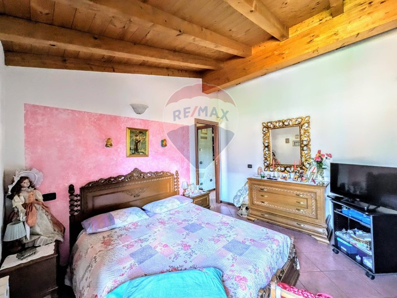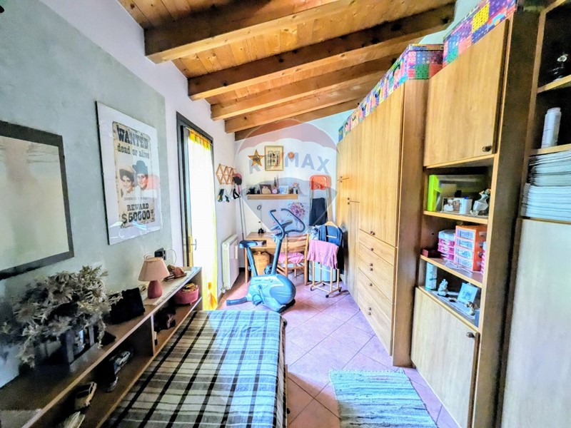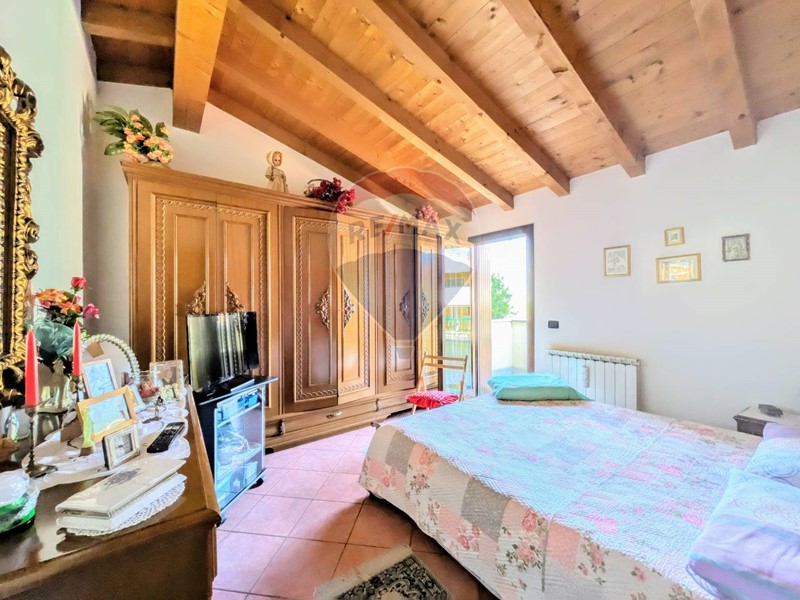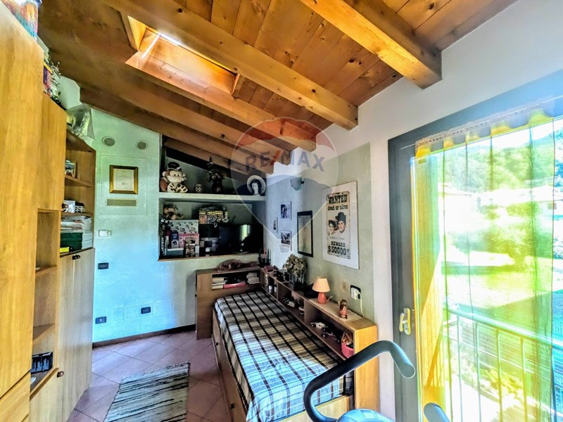 Salendo invece la scala che conduce al primo piano raggiungiamo le due camere, una singola e una matrimoniale dotata di balcone con vista, e il secondo bagno, anchesso finestrato. La zona notte è caratterizzata dalle meravigliose travi a vista che donano calore e vivacità.