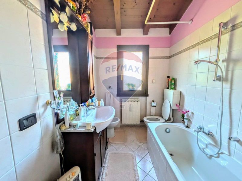 Allo stesso piano troviamo poi il disimpegno che da accesso al primo piano finestrato e alla scala che conduce nel seminterrato, dove troviamo la grande e pratica lavanderia e il box auto privato.