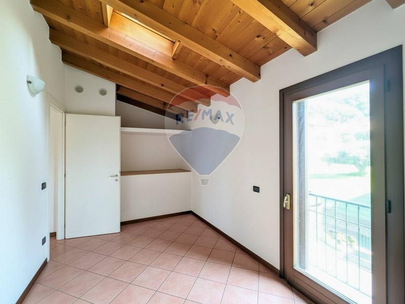 Un comodo disimpegno collega il soggiorno al bagno del piano, finestrato, e alla scala interna che conduce sia al piano primo sia al piano seminterrato. Al livello superiore si sviluppa la zona notte, composta da una camera singola e da una spaziosa camera matrimoniale con balcone panoramico, oltre al secondo bagno finestrato; le travi a vista in legno conferiscono unatmosfera calda e accogliente, tipica delle soluzioni residenziali di qualità. Nel piano seminterrato trovano spazio una grande lavanderia/hobby room e il box auto privato con accesso diretto, un plus importante in termini di comodità quotidiana.