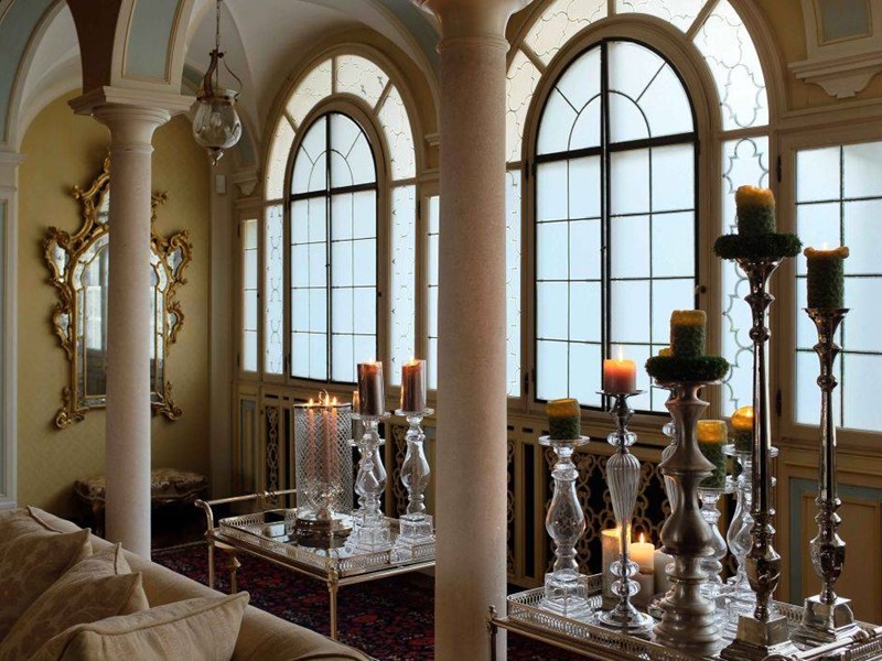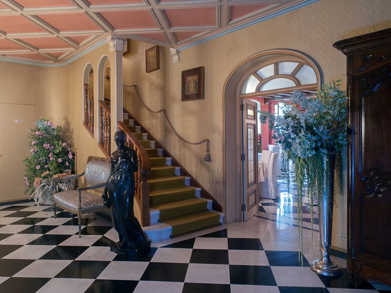 Gli interni sono stati mantenuti in ottimo stato, con attenzione alla conservazione degli elementi originali, come gli affreschi, le vetrate artistiche e le finiture depoca.