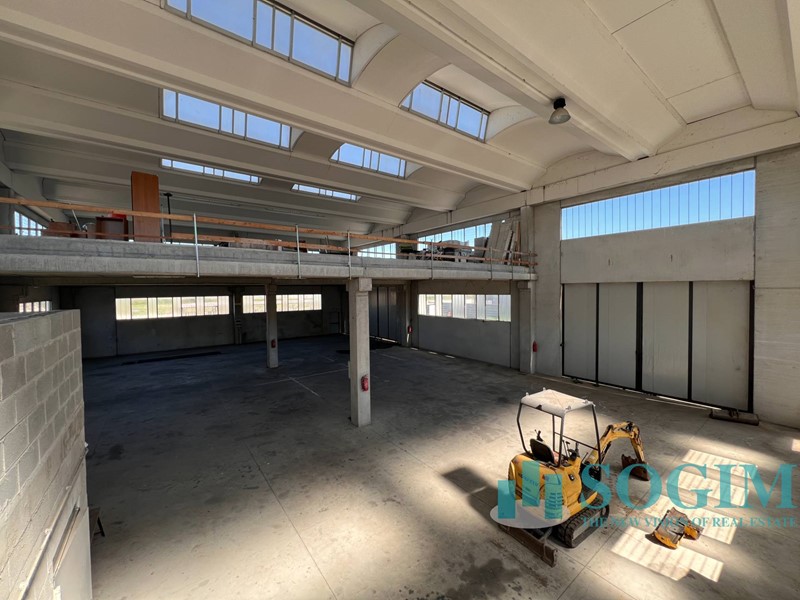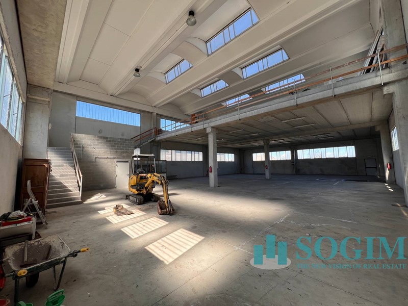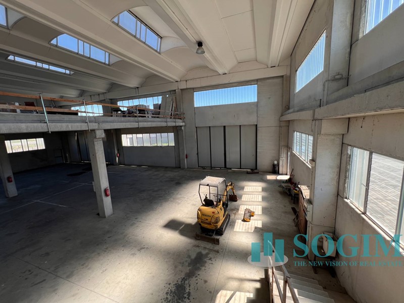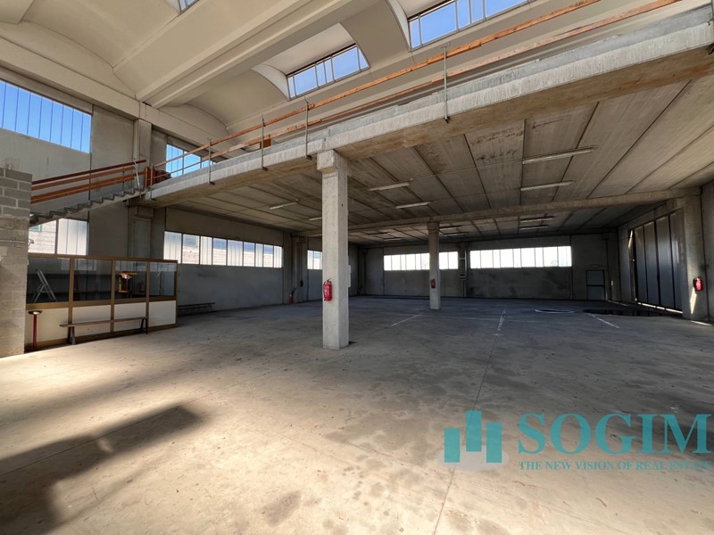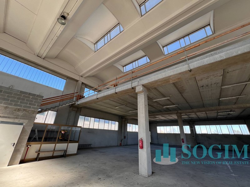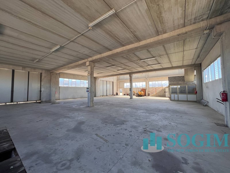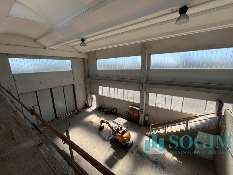 L'immobile consta di una metratura totale ca 1000 mq così disposto: al piano terreno 600 mq con piccolo ufficio e servizi igienici; al primo piano collegato con scala interna, soppalco di mq 390 ca. L'altezza utile è di 9 m al colmo nella parte non soppalcata, mentre nella restante è di 4 mt.
