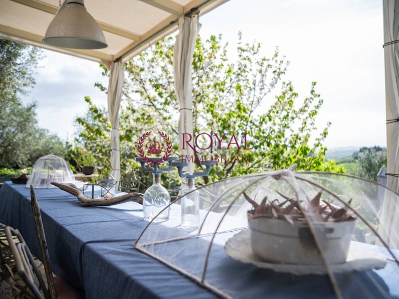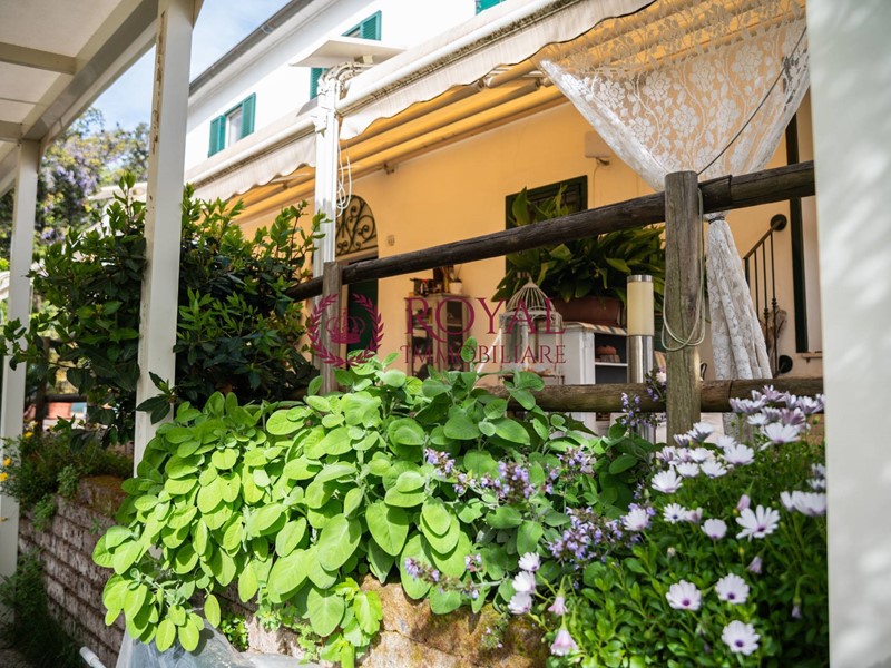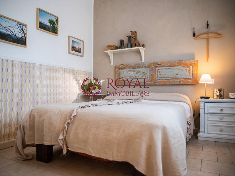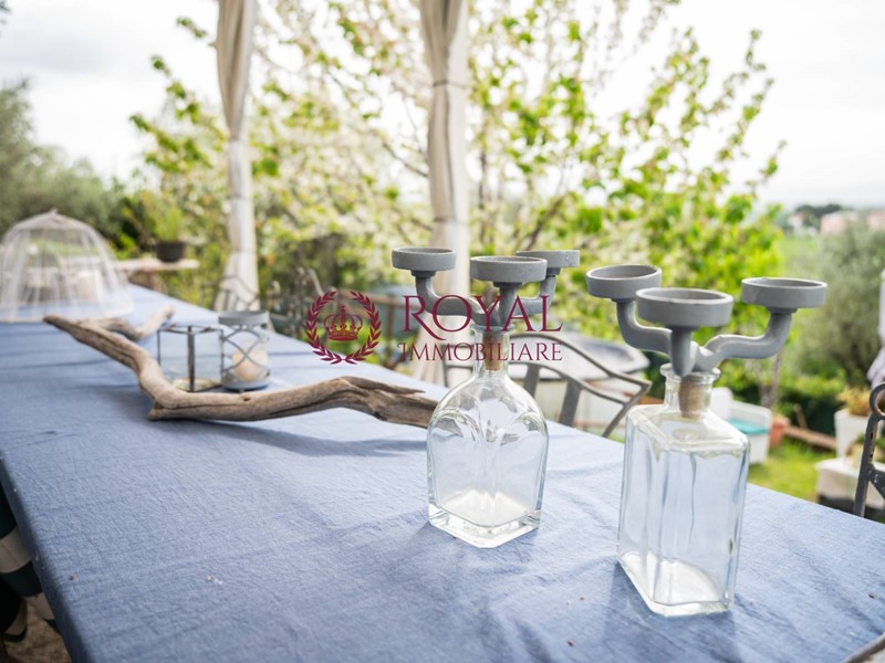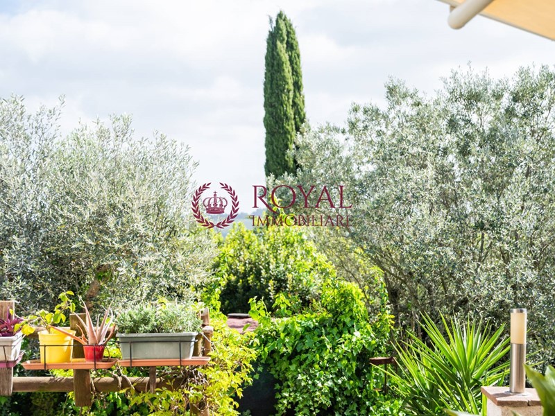 Su due piani libera su quattro lati, con terrazza abitabile e giardino privato. Ristrutturata nel 2012 di circa 130 mq complessivi, attualmente divisa in due unità distinte delle quali una adibita come grazioso B&B attualmente operativo, con due ingressi indipendenti, 4 posti auto privati, giardino di 700 metri quadrati con alberi da frutto e olivi con splendida vista sulle colline, patio piastrellato 80 mq per cene e zona relax. Costruita nel 1920 e completamente rinnovata nel 2012, si sviluppa su due livelli comunicanti da comoda scala interna a pietra dell'epoca. Al suo interno presenta travi a vista, alcune zone un ottimo parquet flottante, infissi nuovi con doppi vetri, inferriate e zanzariere, 4 bagni, 4 camere da letto, salotto, cucina abitabile, cantina e ripostiglio, cabina armadi, riscaldamento con pompa di calore, solare termico per l'acqua calda e boiler, bombola GPL per i fuochi della cucina. Bassissime spese di gestione.