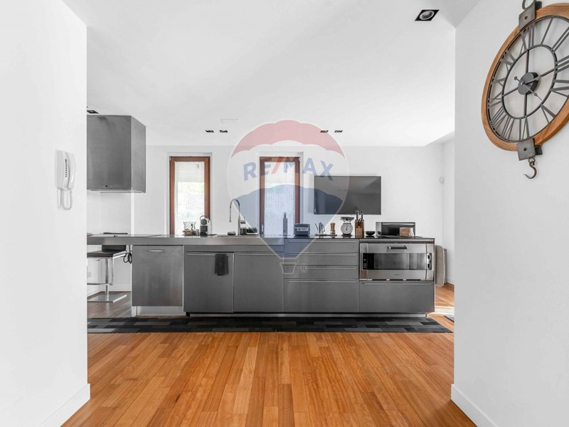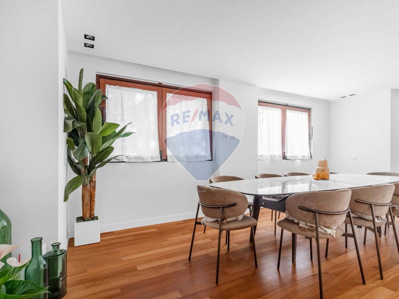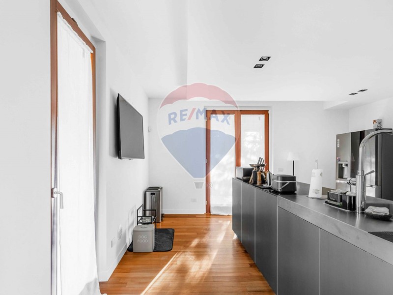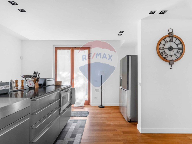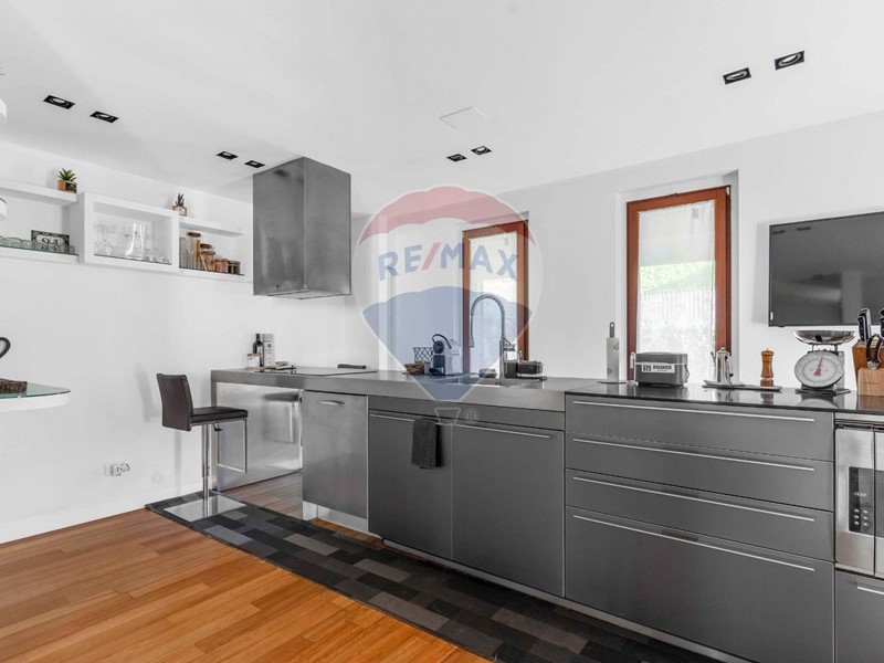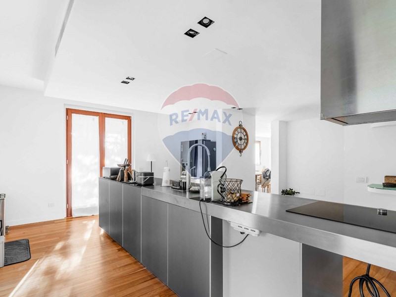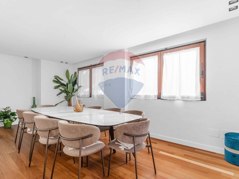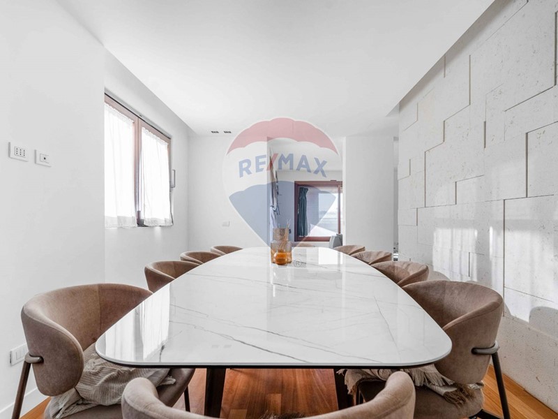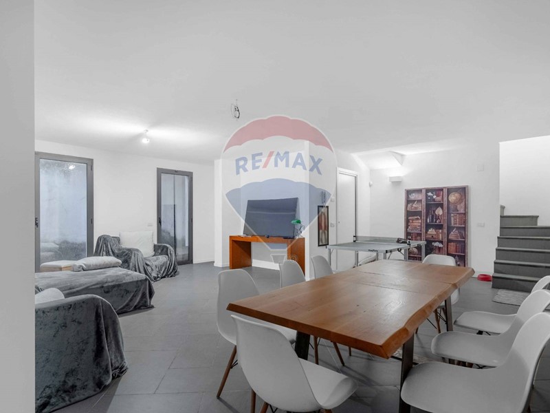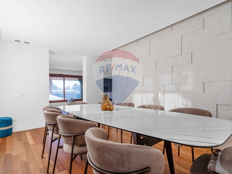 La cucina abitabile, dal design moderno, è dotata di isola centrale e comoda dispensa, perfetta per chi ama cucinare e vivere la casa con praticità. Adiacente troviamo una sala da pranzo, in cui può essere comodamente posizionato un tavolo con posti a sedere per 10 persone o più, rendendola ideale per cene ed eventi privati.