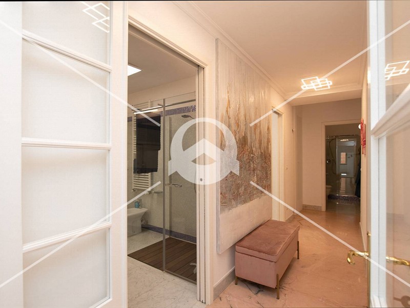 L'appartamento è composto da un ampio e luminoso salone, una cucina abitabile, tre camere da letto matrimoniali di cui una con cabina armadi, doppi servizi e lavanderia.