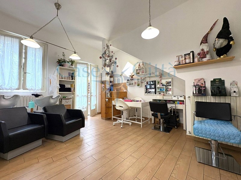 L'immobile è così composto: al piano terra troviamo un ambiente unico attualmente adibito a parrucchiere/estetista, completo di bagno a norma per disabili recentemente ristrutturato. Il negozio presenta pavimentazione in gres e impianto elettrico rifatto e certificato.
