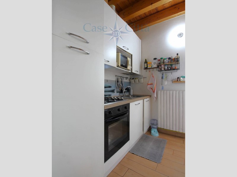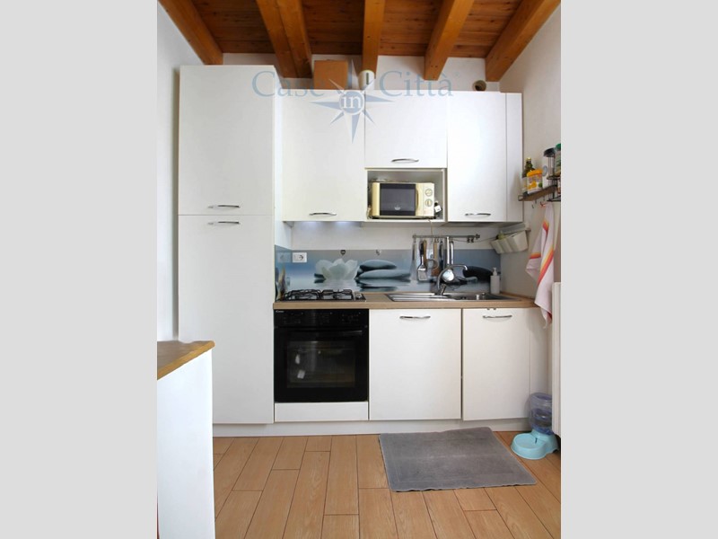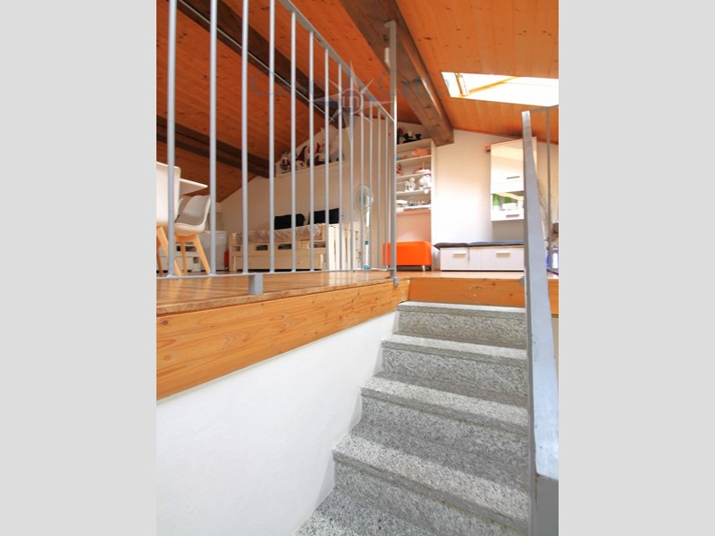 Tramite una scala interna si accede al primo piano, dove si sviluppa la zona giorno composta da soggiorno, cucina, bagno e un pratico ripostiglio ricavato nel sottoscala.